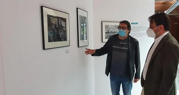 El concejal de Turismo, Fernando Castaño, acompañado por el director del Museo del Comercio y la Industria de Salamanca, Miguel García Figuerola, y el fotógrafo Ángel Centeno Cabezas, han inaugurado esta mañana la exposición fotográfica ?El tiempo en sus manos?.