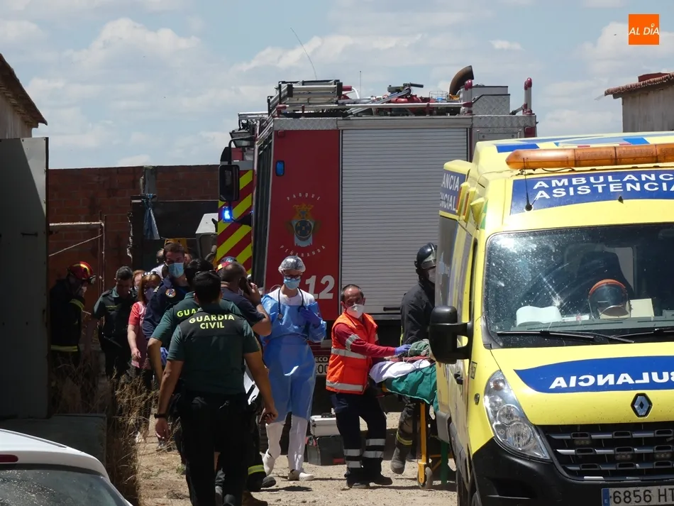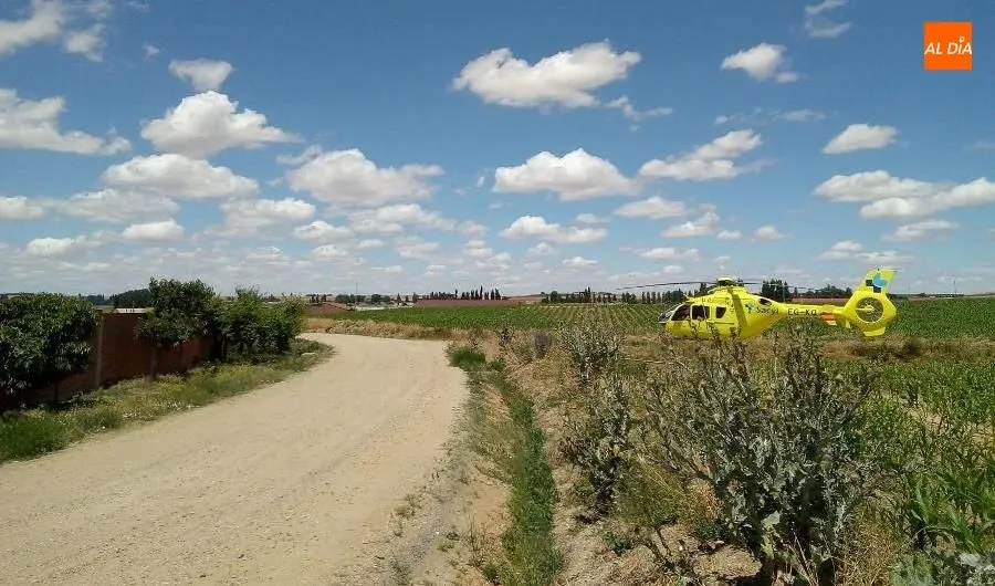Hasta el lugar se desplazaron una ambulancia del Sacyl, el helicóptero medicalizado, efectivos de la Guardia Civil, sanitarios y bomberos que facilitaban la liberación del herido.