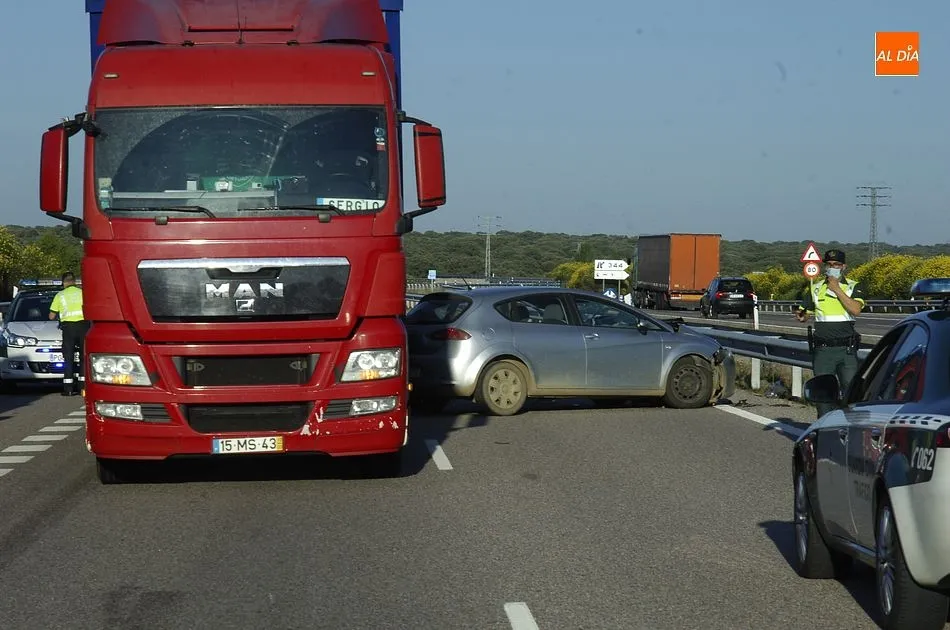 Tres personas resultaron heridas a primera hora de la mañana del jueves en un accidente de tráfico registrado en la Autovía A-62 en dirección a Salamanca. El suceso tuvo lugar concretamente a las 7.29 horas en el kilómetro 344 de la Autovía, a la altura del término municipal de Espeja, cuando a la salida de Gallegos de Argañán colisionaron dos turismos con un camión.