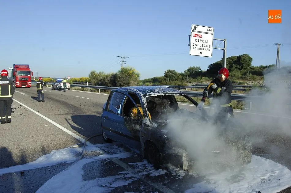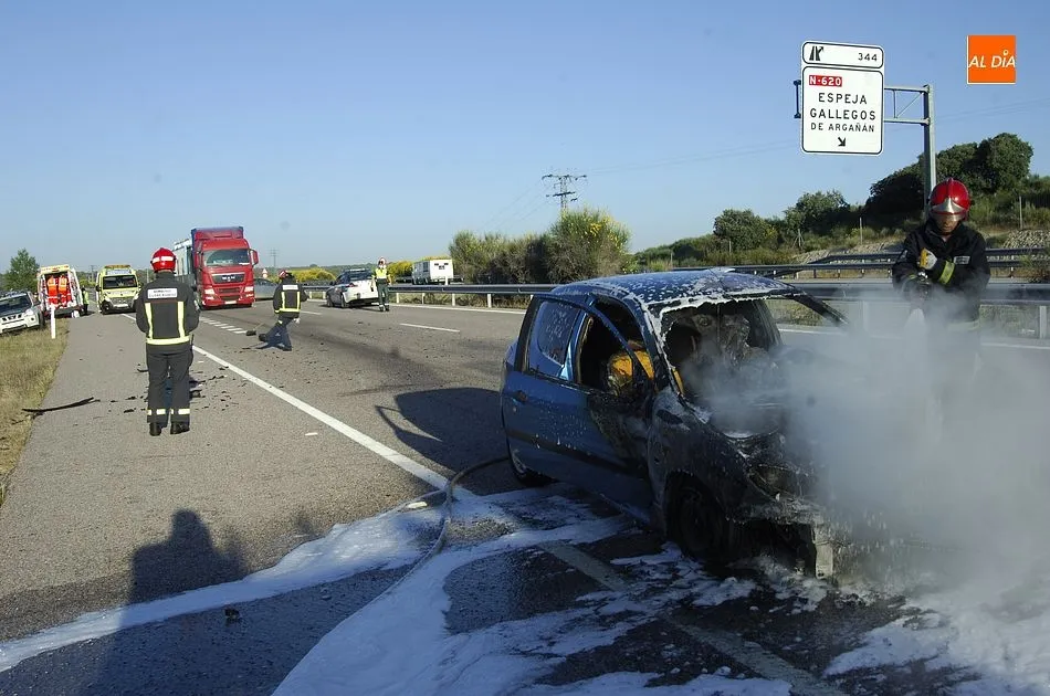 Hasta el lugar del accidente también acudió una dotación de los Bomberos de Ciudad Rodrigo, ya que uno de los turismos implicados echó a arder, quedando totalmente calcinado. Evidentemente, la Autovía A-62 permaneció cortada al tráfico en ese punto por parte de agentes de la Guardia Civil mientras duró la intervención sanitaria y de los Bomberos.