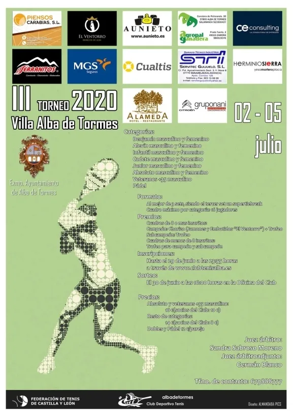 La inscripción se puede realizar a través de la página web oficial del club (www.clubtenisalba.es) hasta el lunes 29 de junio a las 23:55 horas. El sorteo tendrá lugar el martes 30 a las 16:00 horas en la oficina del club.