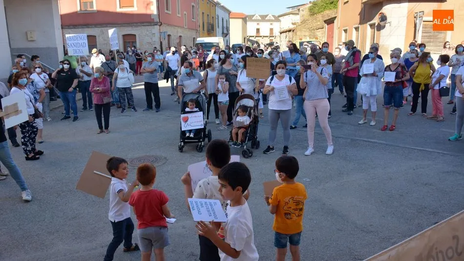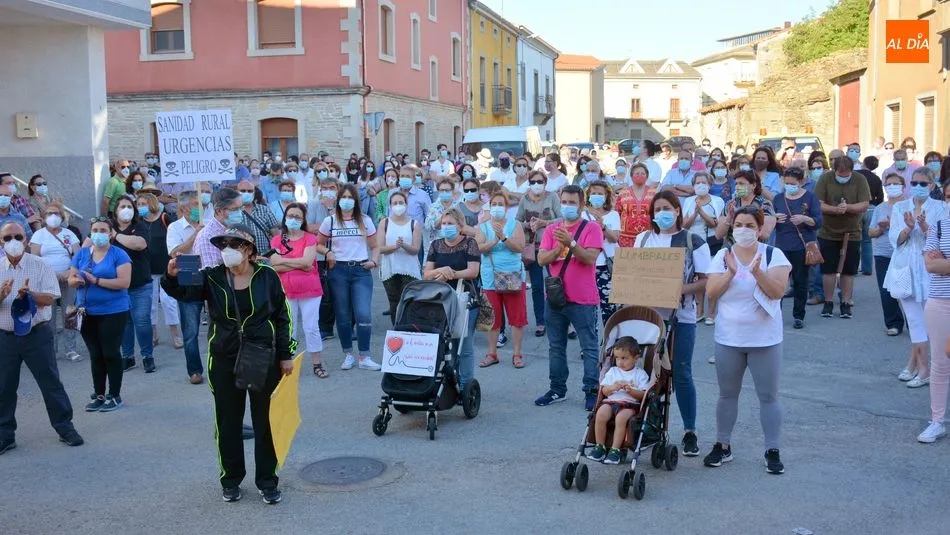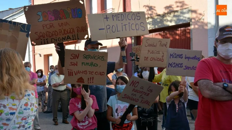 En la calle del centro de salud y aledañas, se reunió gente de todas las edades y de todas los pueblos de la comarca, todos con mascarillas y guardando las medidas de seguridad, portando pancartas y carteles con lemas reivindicativos, como 'Con la salud no se juega, con la Sanidad no se negocia', 'No a los recotes en sanidad rural', "sin medicos, sin enfermeros, sin recursos sin gente, sin presente", "mismos impuestos mismos servicios", "Sin sanidad volvemos a la fase O"......