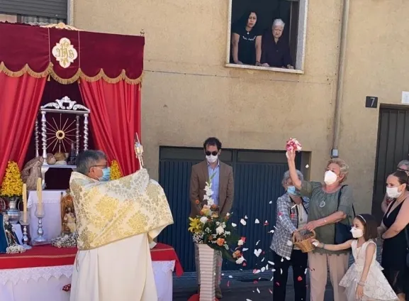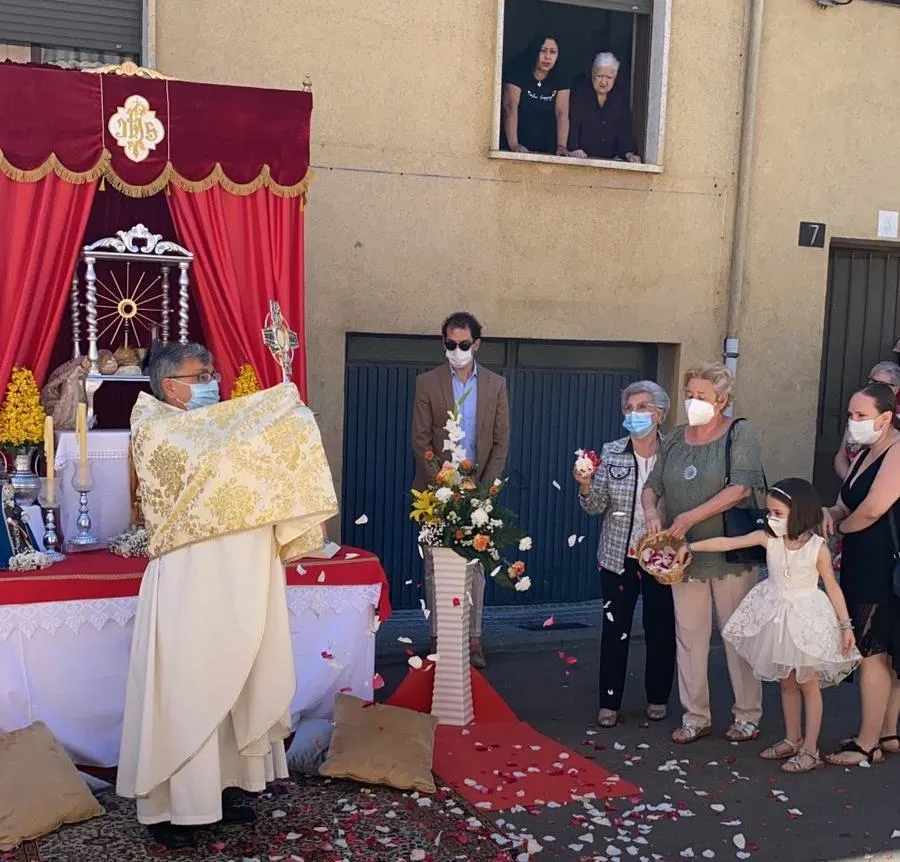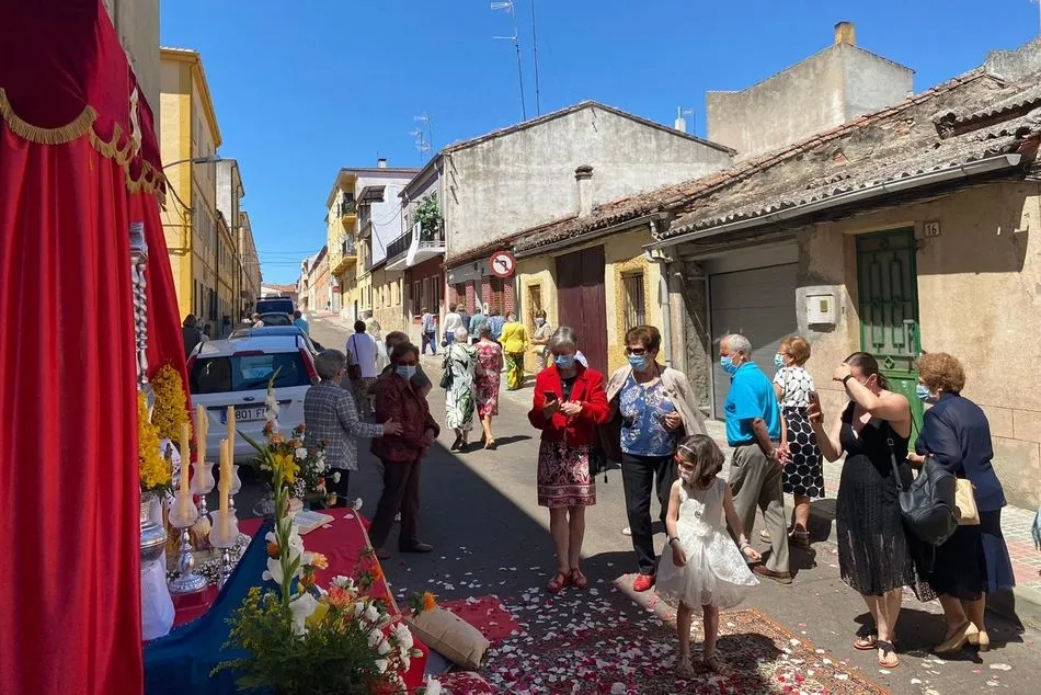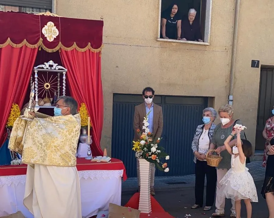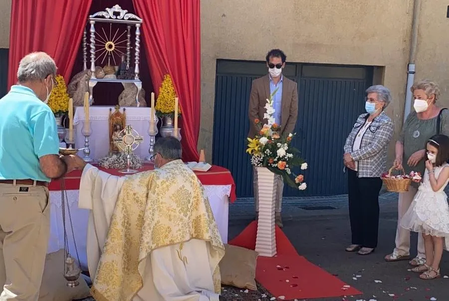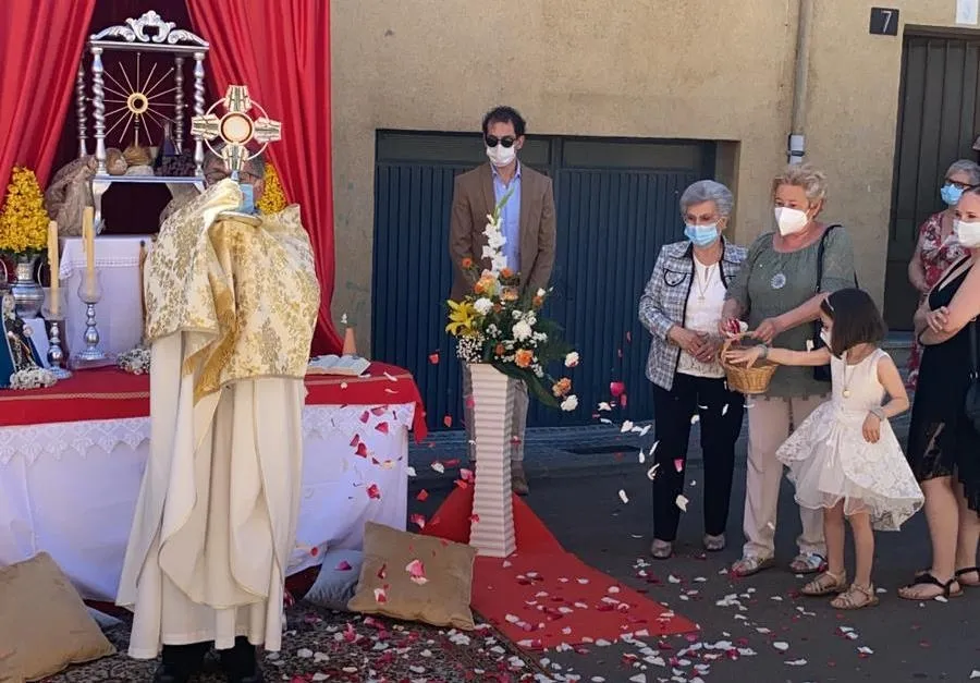 De este modo, el Santísimo Sacramento salió a las calles, portado por el párroco de Fátima, Vidal Rodríguez Encinas, para hacer un recorrido que le llevó a visitar un altar que habían preparado varios vecinos del barrio con todo detalle en la vecina calle Alfonso IX. Como marca la tradición, al Santísimo se le arrojaron pétalos, que a falta de niños de Primera Comunión para hacerlo, fueron lanzados por varias vecinas. Tras esa visita, el Santísimo regresó al templo parroquial.