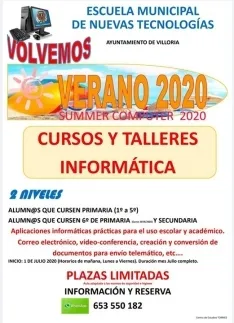 El Ayuntamiento de Villoria pone la Escuela municipal de nuevas tecnologías para verano. Se impartirán cursos y talleres de informática en dos niveles a partir del 1 de julio.