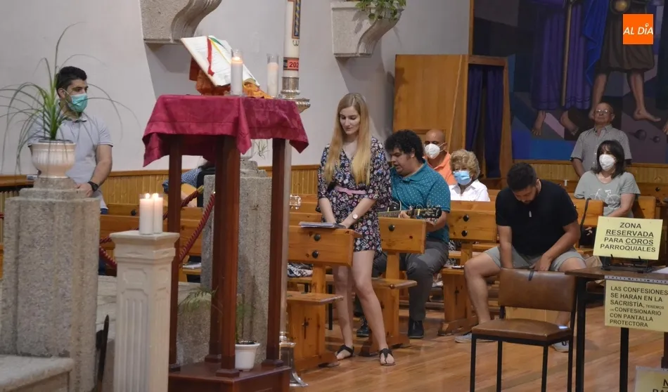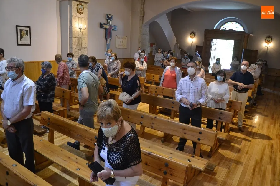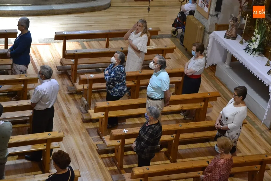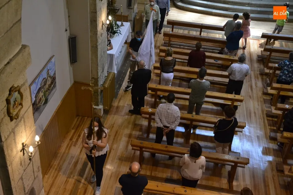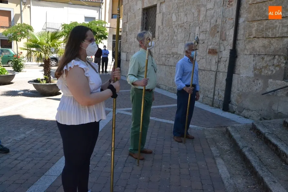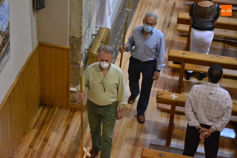 Junto al Santísimo y al párroco, la pequeña comitiva fue integrada por una cruz, el estandarte de la Adoración Nocturna, las personas que ejercieron como mayordomos del Santísimo (Eloy y Paco), y varios niños con velas, mientras el resto de fieles permanecieron en sus bancos mientras se llevó a cabo el desfile. A estos fieles se les indicó que no hacía falta que se arrodillasen, para así tocar lo menos posible los bancos.