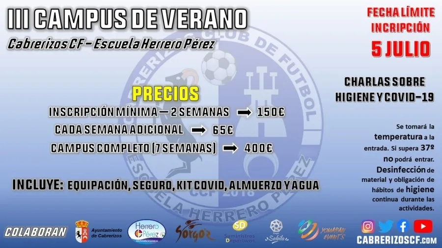 Tras la muchas peticiones recibidas el Cabrerizos CF ha decidido realizar su Campus de verano, que alcanza la III edición, con todas las precauciones sanitarias necesarias ante el COVID-19.