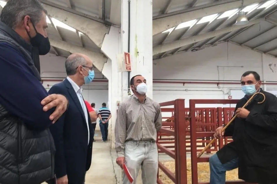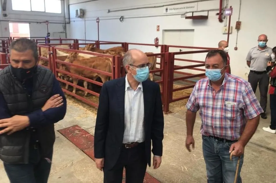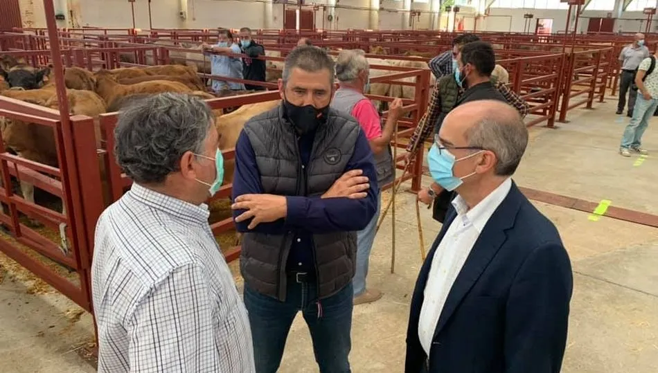 Durante la celebración del mercado de ganado, el presidente de la Diputación, Javier Iglesias, se acercó hasta el recinto ganadero para conocer de primera mano su desarrollo y la opinión los profesionales sobre las medidas aplicadas para preservar la seguridad sanitaria de ganaderos y compradores.