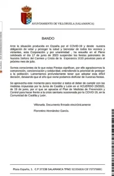 El Consistorio dio a conocer esta nueva a través de un bando, en el que lamentan ?profundamente tener que tomar esta decisión?, además de agradecer la ?comprensión, concienciación y solidaridad?.