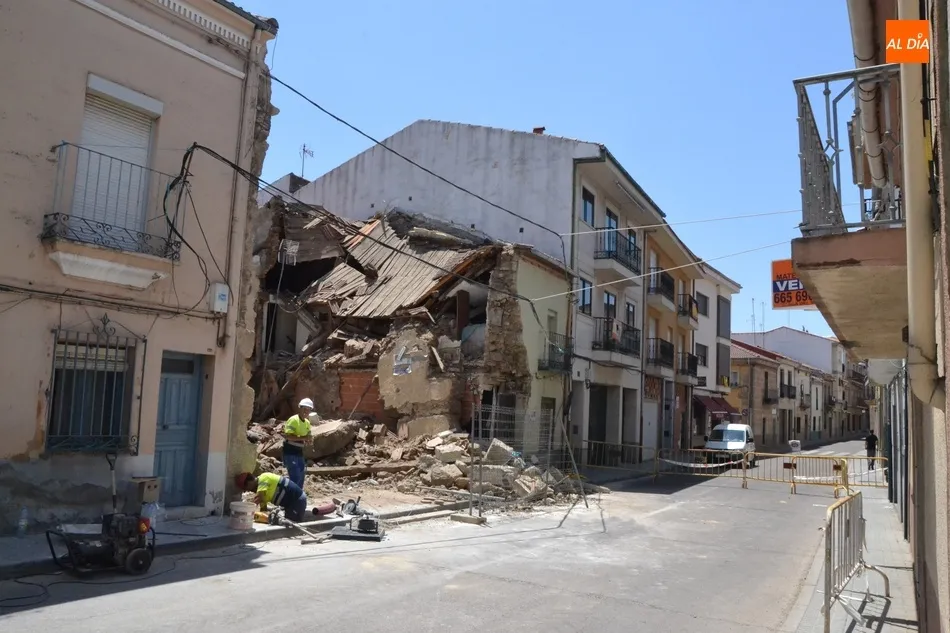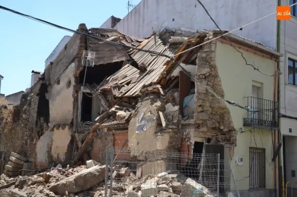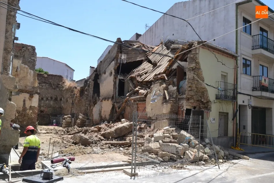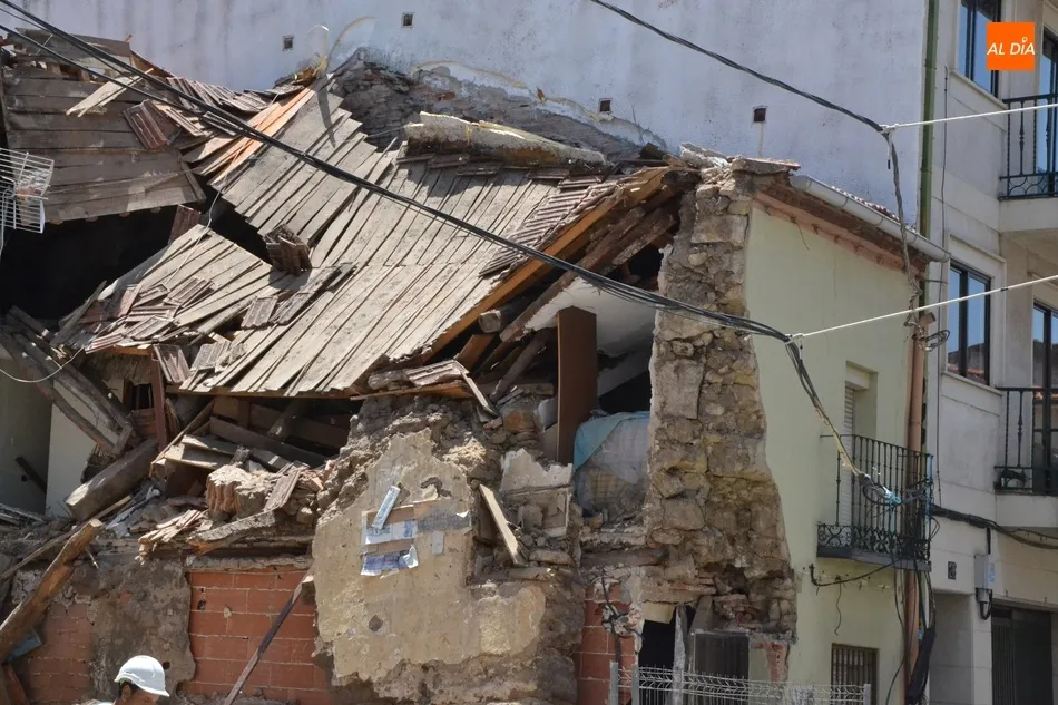 En las últimas horas se ha venido parcialmente abajo un inmueble de la calle Santa Clara de Ciudad Rodrigo situado en el tramo de la vía comprendido entre las calles Rastrillo y Valera. El derrumbe, acaecido durante la noche del miércoles al jueves, ha afectado en concreto a una casa de dos plantas contigua al solar que había quedado tras el derribo completo de un inmueble durante las últimas semanas (estos trabajos de derribo comenzaron el pasado mes de abril).