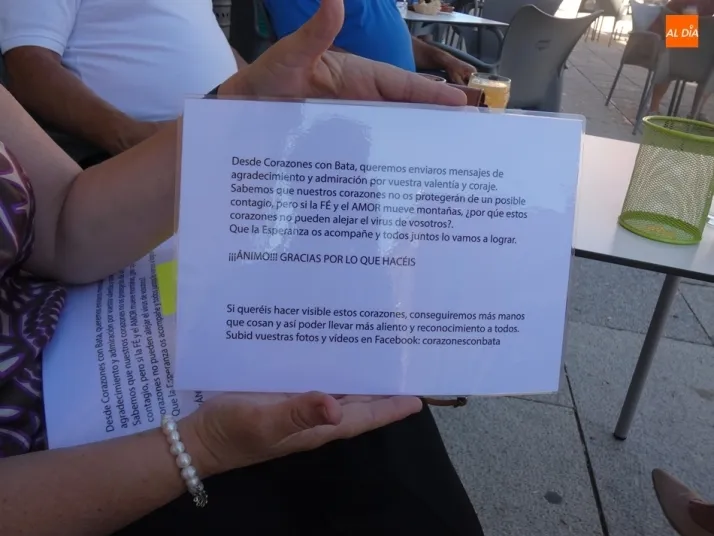 Pilar Yenes, Josefa Gamaza, Ana María Rodríguez y Marisol Velasco han confeccionado estos corazones en tela, con un imperdible o una cuerda que permite colgarlos del coche o prenderlos en la ropa. El patrón se le facilitó la persona que ha promovido esta iniciativa a nivel nacional. Se calcula que son más de 20.000, los corazones repartidos. Cada uno es diferente y portan un mensaje. Personal de las residencias, casa asistida, tiendas, pescaderia, panaderia, ayuda a domicilio, agricultores, trabajadores del Ayuntamiento, talleres, centro médico, pastores,.. entre otra profesiones, se han hecho merecedoras de este detalle, que va cargado de ánimo, agradecimiento y reconocimiento.