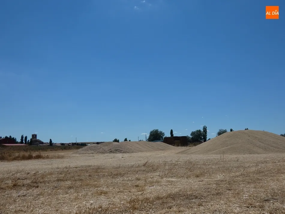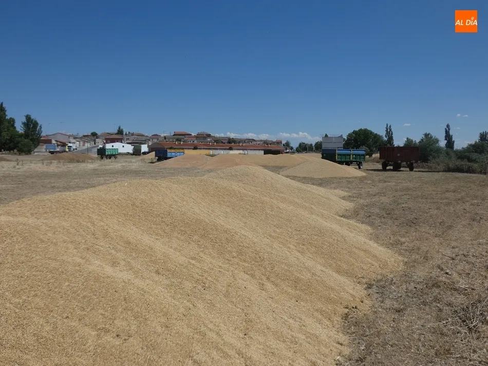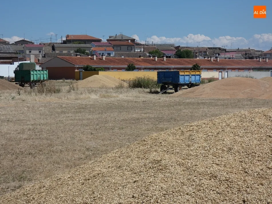 En pueblos como Villaflores y Poveda de las Cintas hay grandes montones de cereales, algunos de los agricultores y otros de los grandes compradores de cereal que tienen alquiladas eras en las que van depositando el grano que van comprando.
