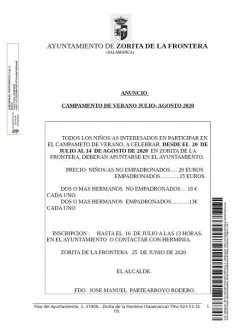 El Ayuntamiento de Zorita de la Frontera ha abierto el plazo para que los jóvenes que lo deseen puedan inscribirse en el campamento de verano que tendrá lugar en los meses de julio y agosto.
