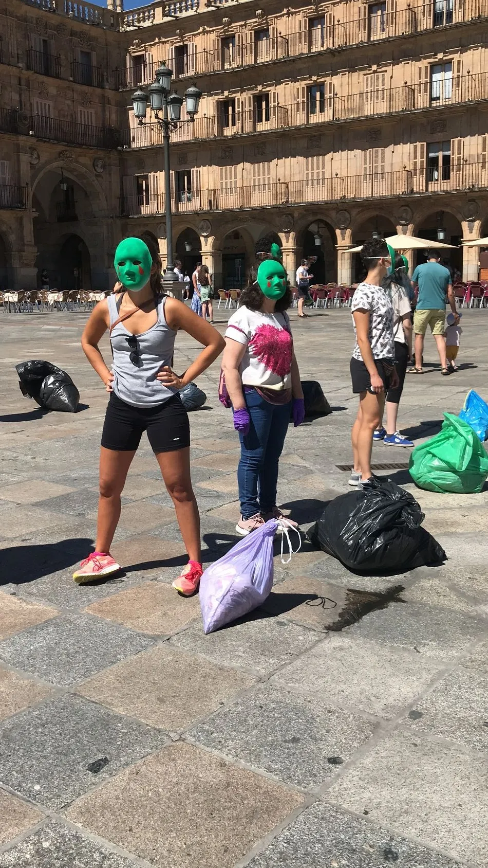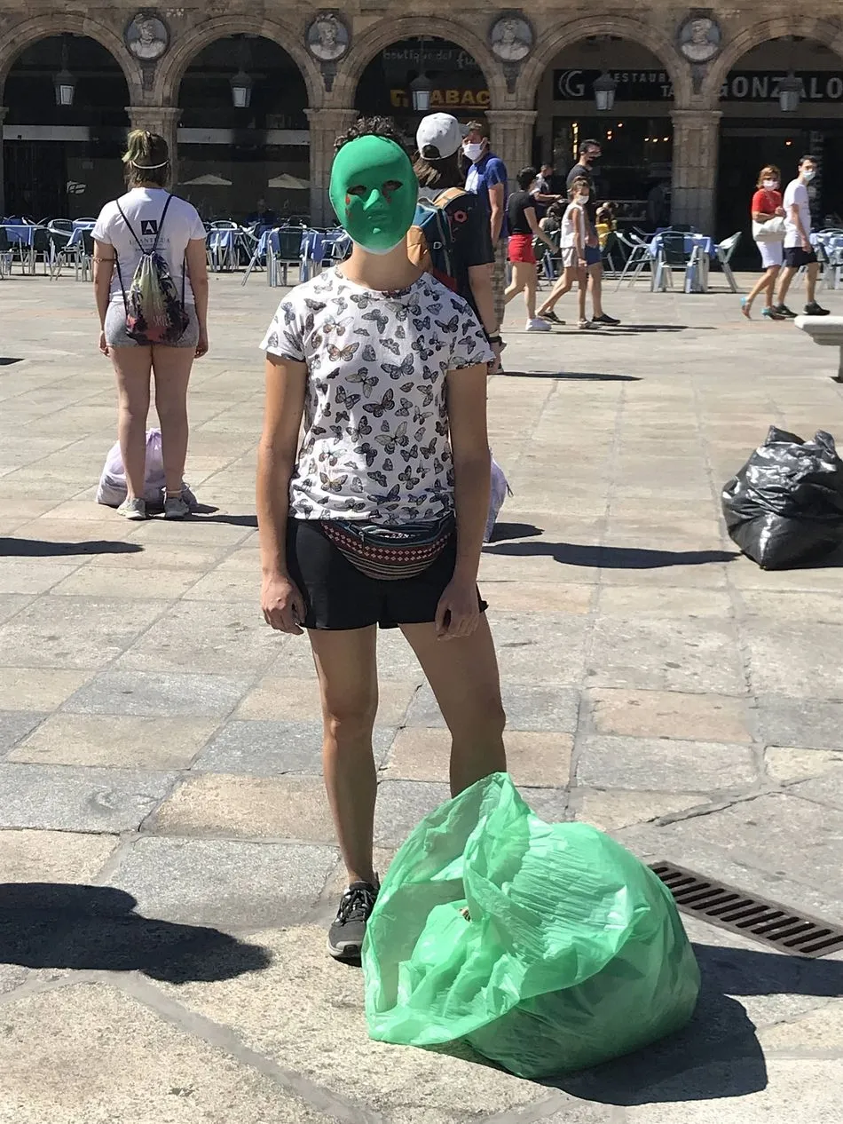Las bolsas menos pesadas se llevaron a Plaza Mayor, frente al Ayuntamiento, en un acto "simbólico" para el que se utilizaron máscaras verdes para mostrar cómo una acción "aparentemente insignificante multiplicada por varias personas que piensen igual" puede dejar una secuela en el río y "afectar de gran manera el ecosistema", añaden.