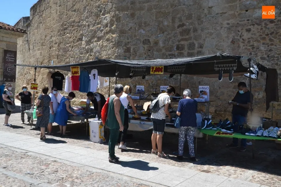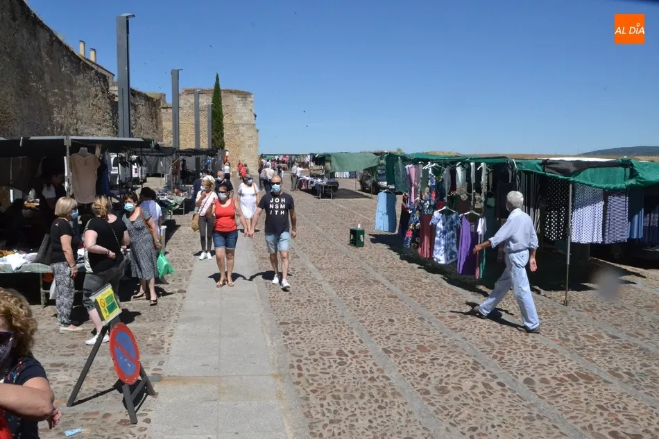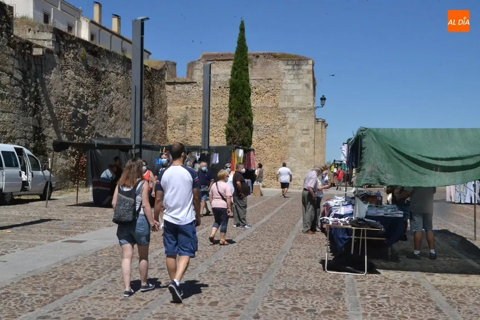 El emblemático mercadillo sabatino de Ciudad Rodrigo está de vuelta. Tras tres meses y medio sin poder desarrollarse por culpa de la pandemia del coronavirus, en la mañana del sábado se recuperó esta tradicional cita, que siempre se ha considerado importante para que haya más movimiento callejero en Miróbriga, con todo lo que ello implica, en las matinales sabatinas.