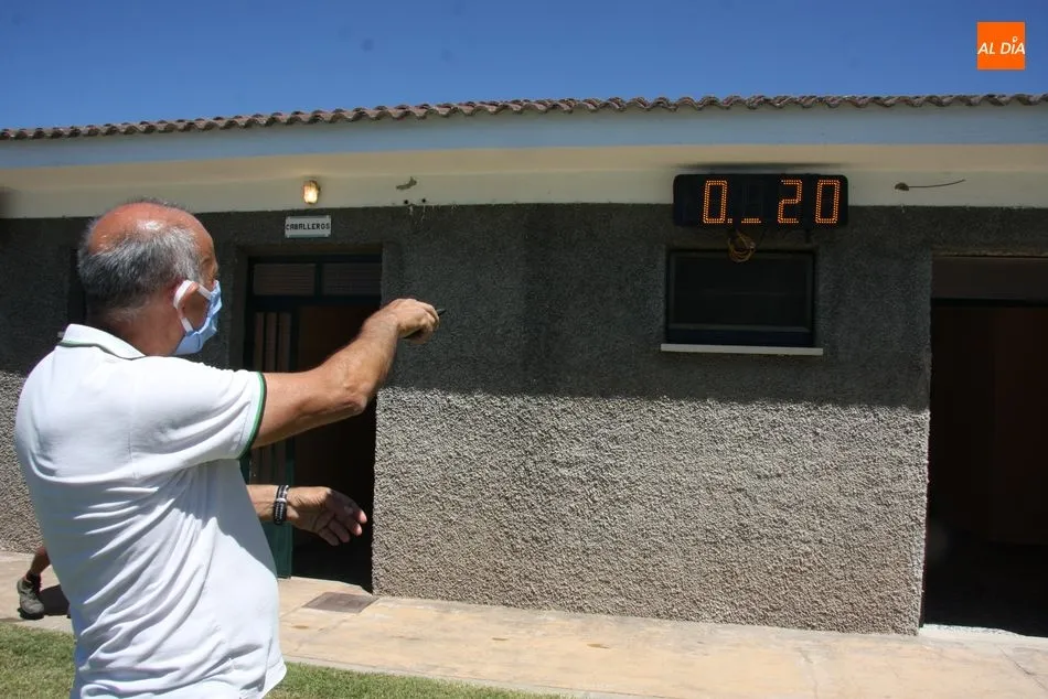 Pero sin duda lo que llama la atención es el sistema de control de aforo tanto al recinto de la piscina como al de cada uno de los dos vasos, para lo que utiliza lo último en tecnología. Para el control del aforo al recinto de las piscinas se utiliza un código QR insertado en cada entrada o en cada abono de usuario, en ambos casos personalizados e intransferibles, lo que permite identificar incluso quienes se encuentran en el interior en el caso de resultar necesario. Y para el control de acceso a los vasos de baño, para el vaso de adultos se han instalado sendas cámaras de conteo de personas en cada una de las dos entradas, y otra en el acceso al vaso de niños. Este sistema, utilizado por centros comerciales para observar las preferencias de los clientes, permite en todo momento conocer el número de personas que hay en los vasos, el primero con un aforo de 120 personas y el segundo de 10. Asimismo, en la salida del recinto se ha instalado un sistema de rodillo que controla la salida de cada usuario.