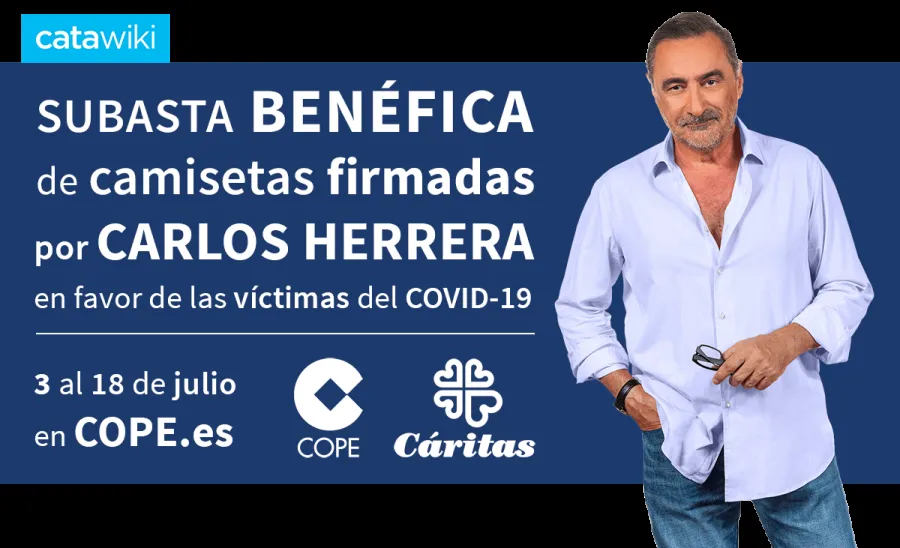Conscientes de la necesidad de seguir arrimando el hombro, COPE y Carlos Herrera ponen en marcha una subasta de carácter benéfico para que los oyentes y aficionados puedan conseguir estas camisetas oficiales. Una puja a través de Catawiki, la plataforma líder de subastas online para comprar y vender artículos especiales y coleccionables, y accesible desde www.cope.es, cuyos beneficios canalizará Cáritas, entidad que viene desarrollando una encomiable labor de asistencia y consuelo frente al coronavirus.