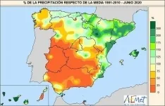 Por otro lado, respecto a las precipitaciones, la AEMET explica que junio de 2020 ha sido "húmedo", con un 9 por ciento más de lluvias de lo normal, ya que se han recogido 34 litros por metro cuadrado frente a los 31 litros por metro cuadrado de media en el periodo de referencia.