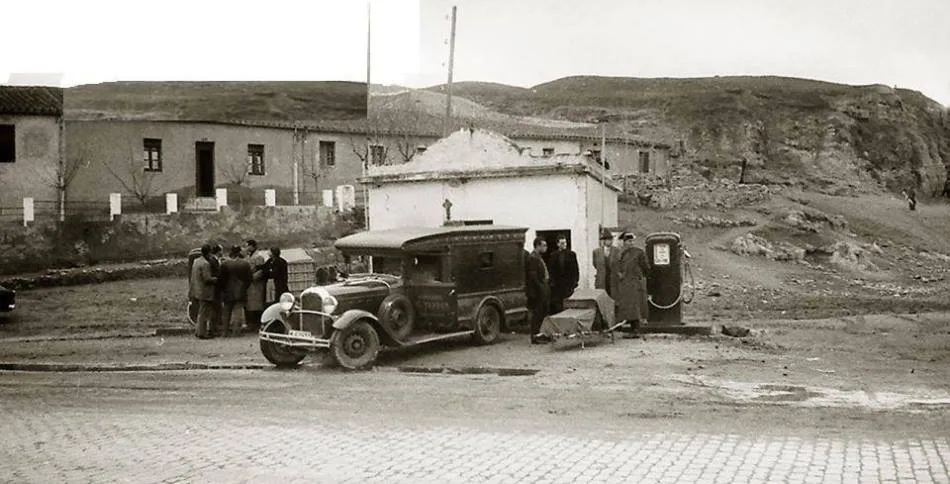 ?Esta ha cobrado actualidad por el reciente derribo de la pequeña edificación que se ve en ella. Es la actual gasolinera de Repsol que hay frente a la Iglesia del Arrabal, ahora en obras?, explica.