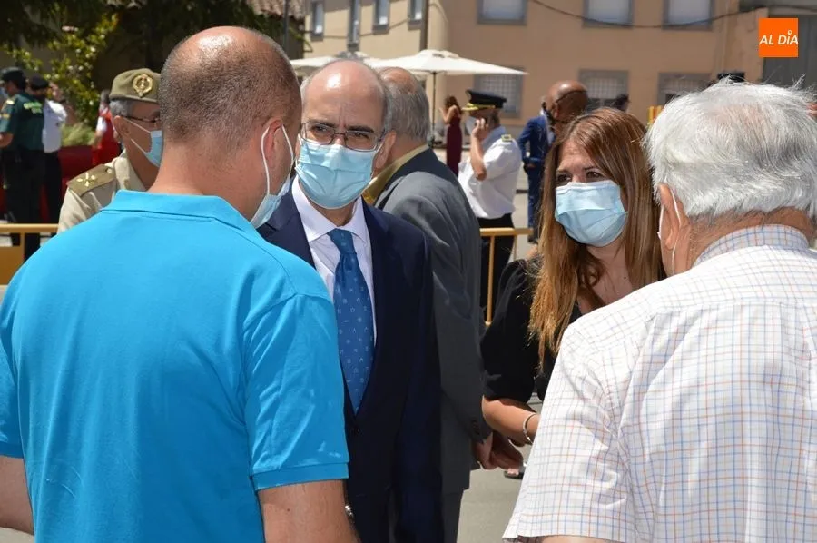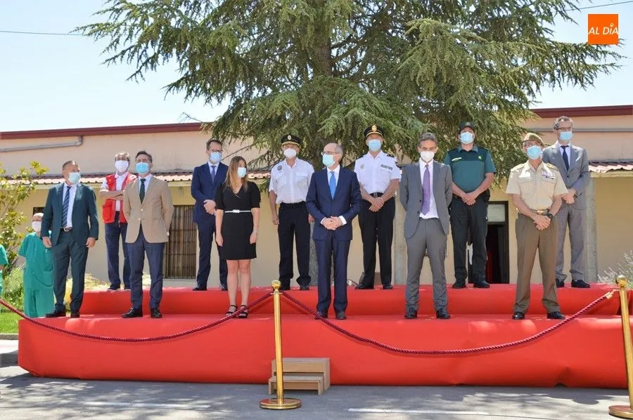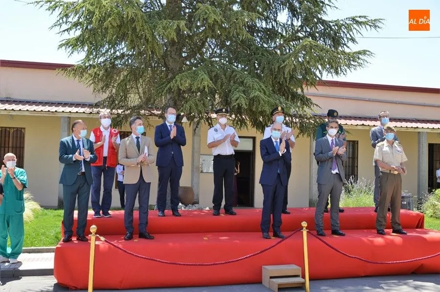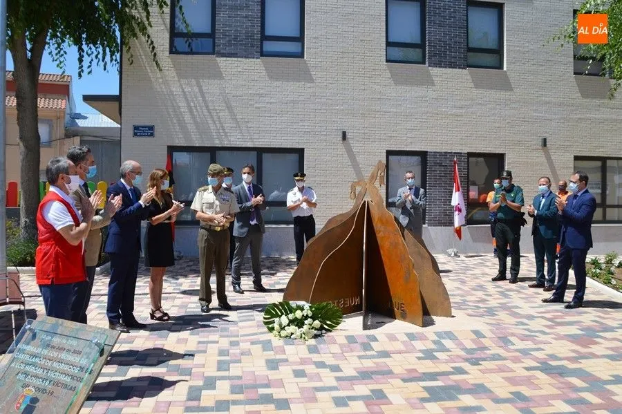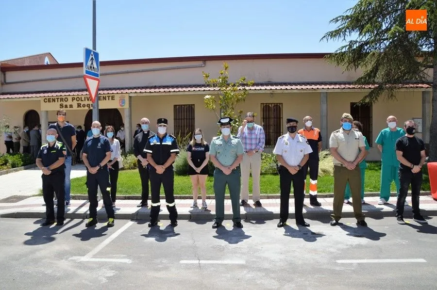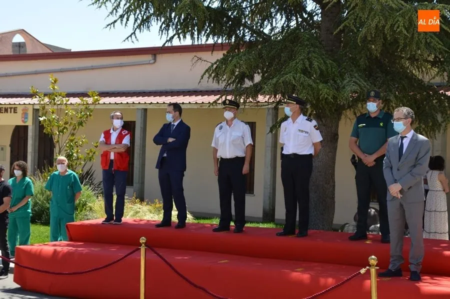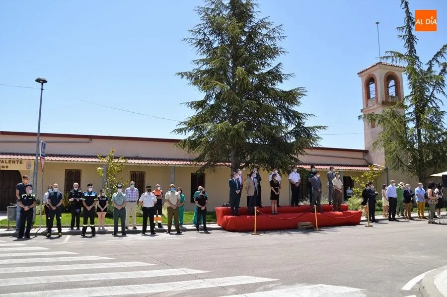 La alcadesa de la localidad, Victoria Manjón, y el presidente de la Diputación Provincial de Salamanca, Javier iglesias, recordaban a las víctimas del coronavirus en la provincia y destacaban la labor realizada por los profesionales sanitarios durante la pandemia.