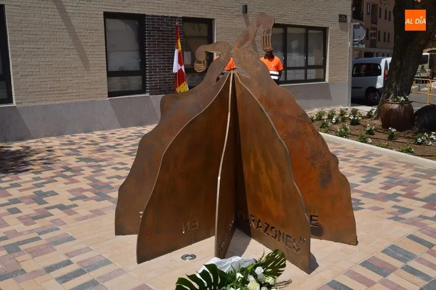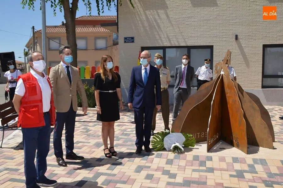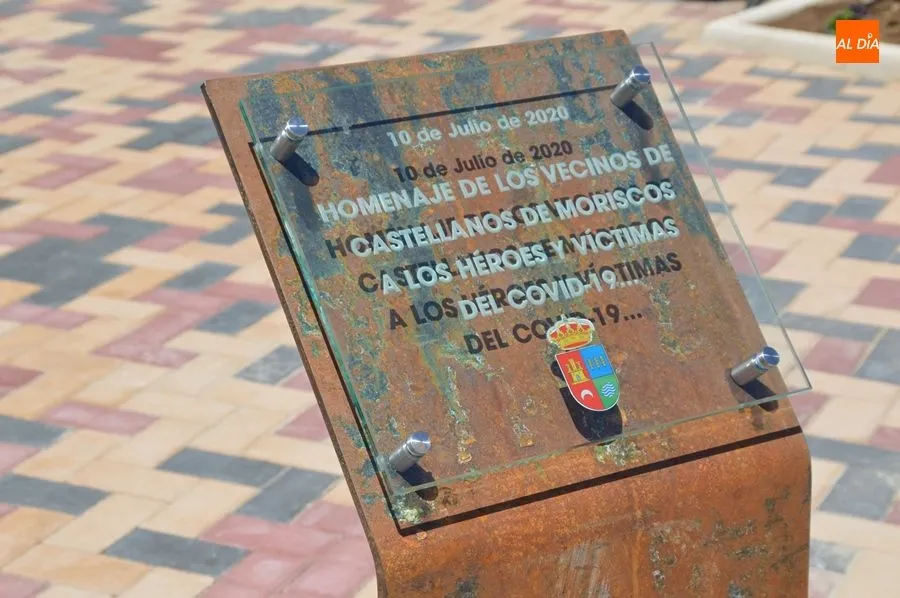 Castellanos de Moriscos ya es la primera localidad salmantina con un monumento dedicado a las víctimas y héroes Castellanos de Moriscos, primera localidad salmantina con un monumento a las víctimas y héroes... | Imagen 1de la COVID-19, tras la inauguración de la obra, que tenía lugar este viernes en la calle san Roque.