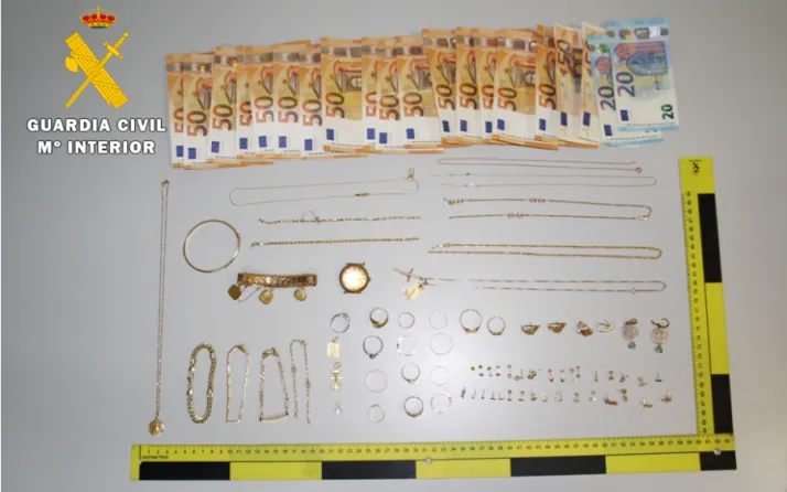 En el momento de la detención le fueron intervenidas multitud de joyas procedentes de sus tres últimos robos en viviendas perpetrados el día 5 de julio: dos cometidos en la provincia de Segovia y uno en la de la Valladolid.