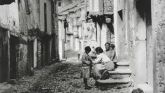 • Niño jugando con una carretilla y serrano. Año 1950. Autor: MG/EFE.