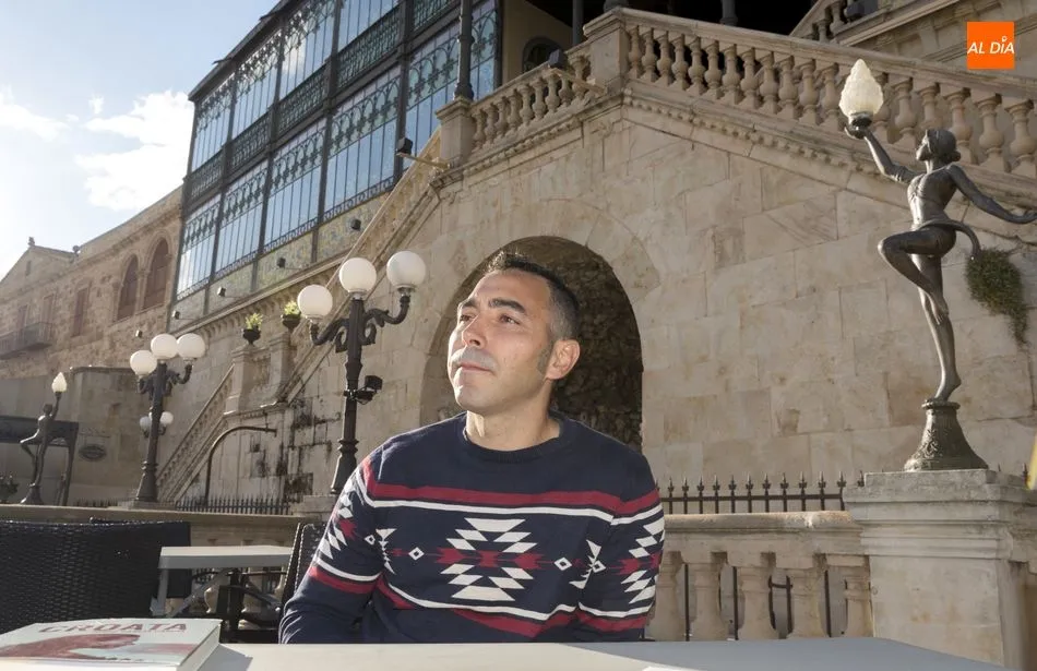 Cae el atardecer sobre la geometría modernista de la terraza de la Casa Lis, muy cerca de donde una de las protagonistas de Croata vive e investiga los casos que Jorge García, deportista, historiador, colaborador de SALAMANCA AL DÍA, narra en una novela contundente a la que solo detiene la pandemia. Publicada por la editorial salmantina Amarante y finalista del Premio Azorín de Novela, Croata es una trepidante aventura donde todo cabe, directa al hígado del lector inmerso en la vorágine de esa actualidad dura y cruda que nos mantiene atrapados a lo largo de sus páginas. Sin embargo, no hay nadie más calmado y mesurado que su autor quien, curtido en la documentación, historiador riguroso, nos recuerda que el autor de los dibujos que ilustran su novela, es el mismo artista que pintó las vidrieras que se alzan detrás de nosotros, Juan Miguel García Corchado.