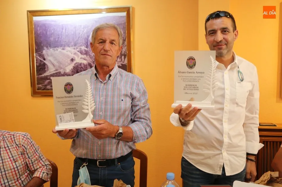 Los dos homenajeados eran Álvaro García Arroyo y Francisco Hernández Hernández, el primero jubilado en 2013 y con 25 años de servicio en el Parque de Bomberos de Vitigudino a sus espaldas; y el segundo, jubilado en 2018 tras 14 años como bombero voluntario en Vitigudino.