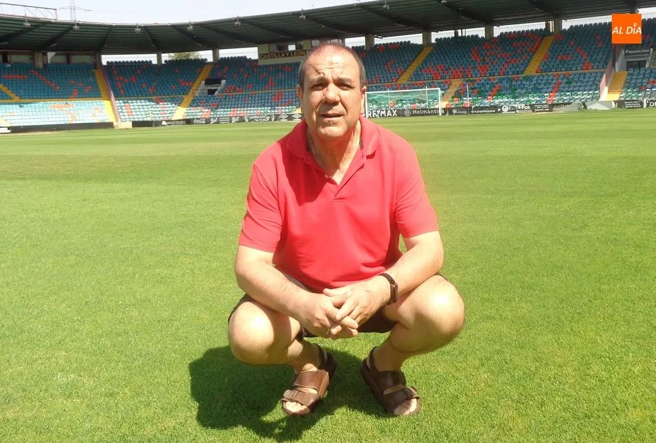 Paseamos por el precioso césped del Helmántico con este salmantino de Villamayor, profesor de Formación Profesional jubilado, que conoce este maravilloso templo del fútbol salmantino desde su inauguración, ?con un nº de socio inferior al 100? y que ya acudía al campo del Calvario para animar a la Unión. Tras la refundación del club, continúan con el equipo y creen que puede ascender a Segunda y algún día volver a le ?élite?, mejorando su organización.