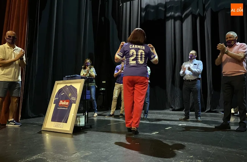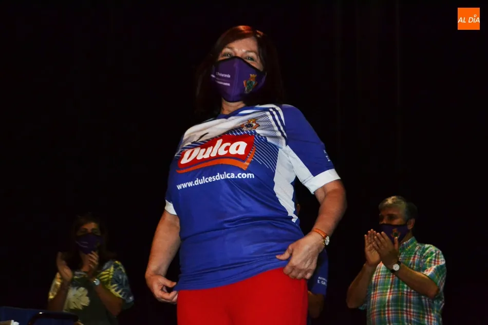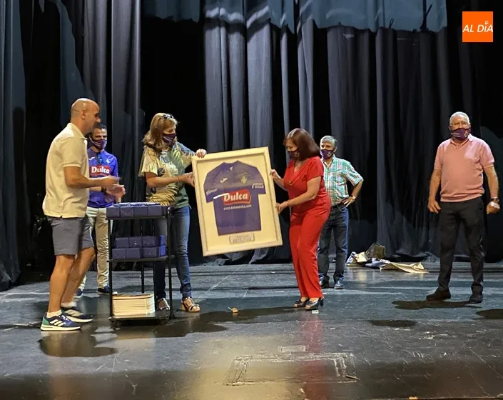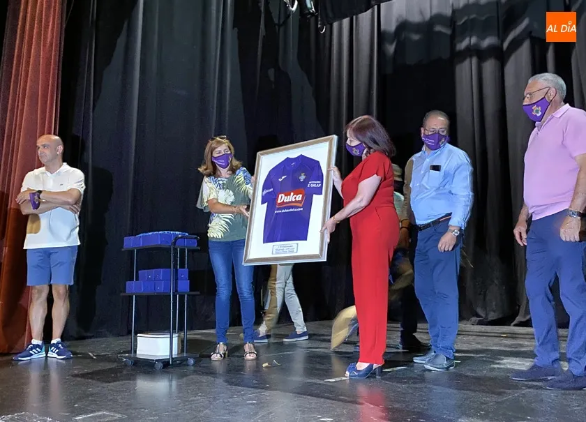 Uno de los momentos más esperados era cuando el presidente Carlos Leonardo hacia entrega a la regidora municipal de la nueva equipación que lucirá el equipo la próxima temporada, que mantiene la esencia morada, aunque con nueva combinación de tonos.