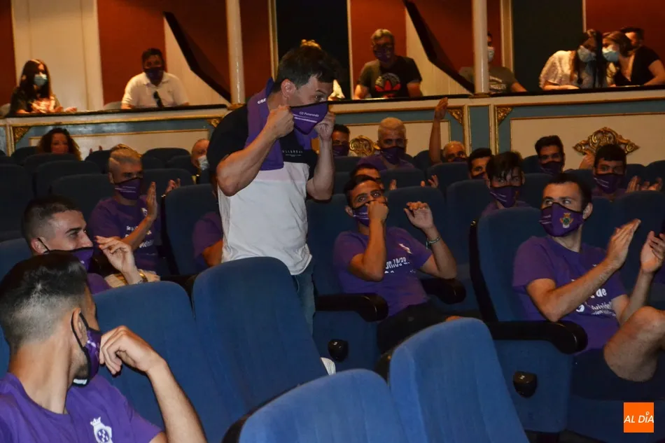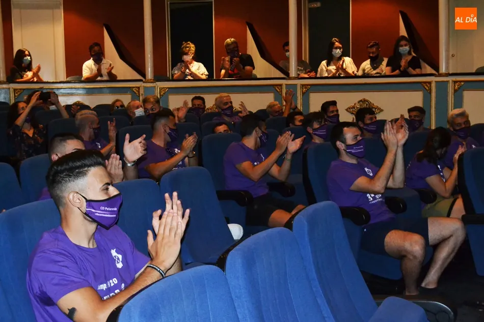 El Teatro Calderón era el lugar elegido para realizar el evento, en el que estuvieron presentes tanto la directiva, como la primera plantilla, cuerpo técnico y una representación de la Corporación Municipal, con la alcaldesa Carmen Ávila a la cabeza. Momentos de mucha intensidad cuando el presidente del Peñaranda, Carlos Leonardo, daba la bienvenida, asegurando que ?nos hubiera gustado celebrarlo con 4.000 personas en el campo, compartir este día junto a mucha más gente, pero las circunstancias nos obligan a tener que vivirlo así. Hace más de tres meses que no nos vemos y ha llegado el día de celebrar y disfrutar? además de hacer un agradecimiento a toda las empresas y personas que han estado apoyando al Club, subrayando que ?hemos conseguido algo que hace 55 años que no pasaba, pero que quede bien claro que íbamos primeros, los puntos que teníamos n