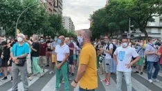 Los concentrados han pedido la dimisión del presidente de la Generalitat, Quim Torra, y del alcalde de Lleida, Miquel Puyo, y también han coreado 'Torra, Torra, Torra, confina Barcelona'.