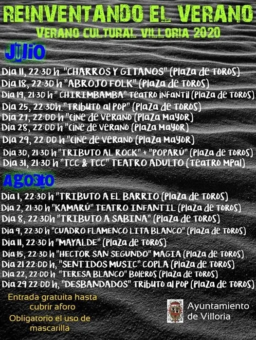 El Ayuntamiento de Villoria ha publicado la programación completa de eventos culturales para noches de los meses de julio y agosto.