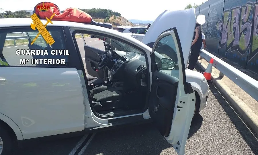 La droga se encontraba oculta en un doble fondo del salpicadero del vehículo de dos varones de 40 y 42 años, naturales y residentes en Santander (Cantabria)