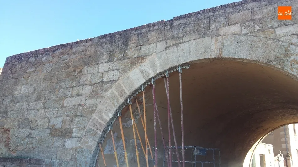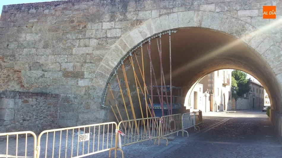 De momento se mantiene el apuntalamiento del arco, lo que obliga a seguir extremando las precauciones a la hora de circular