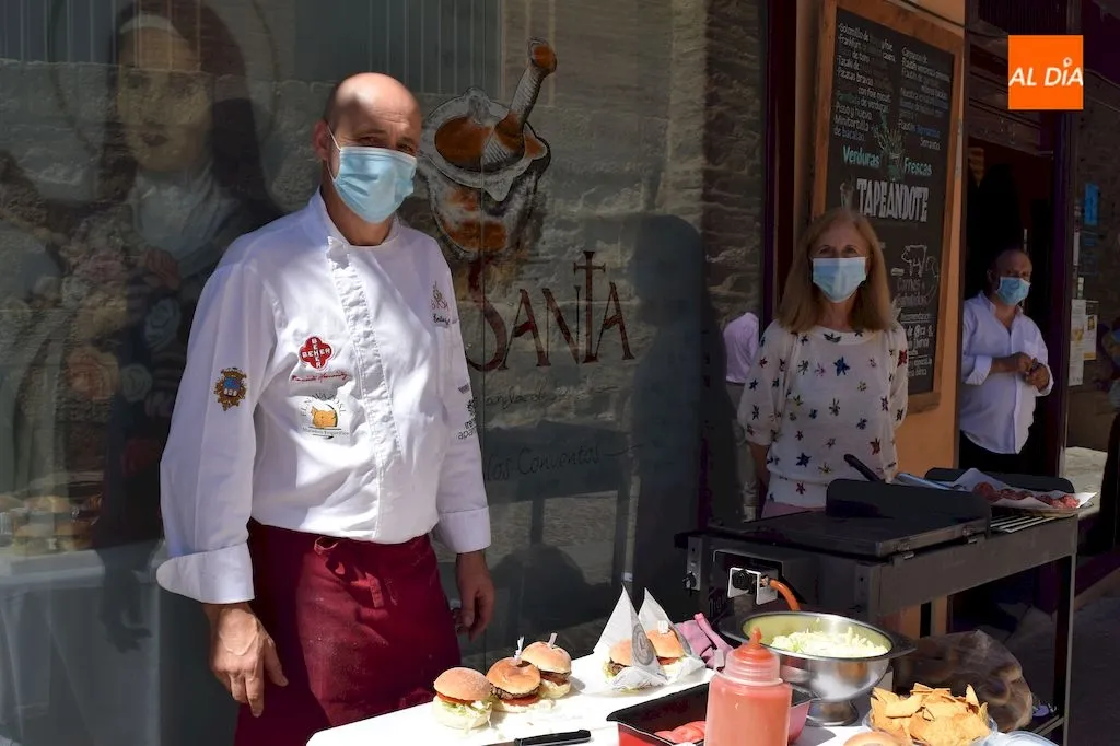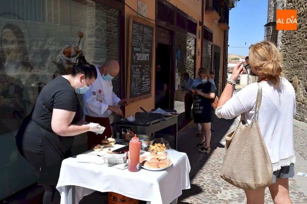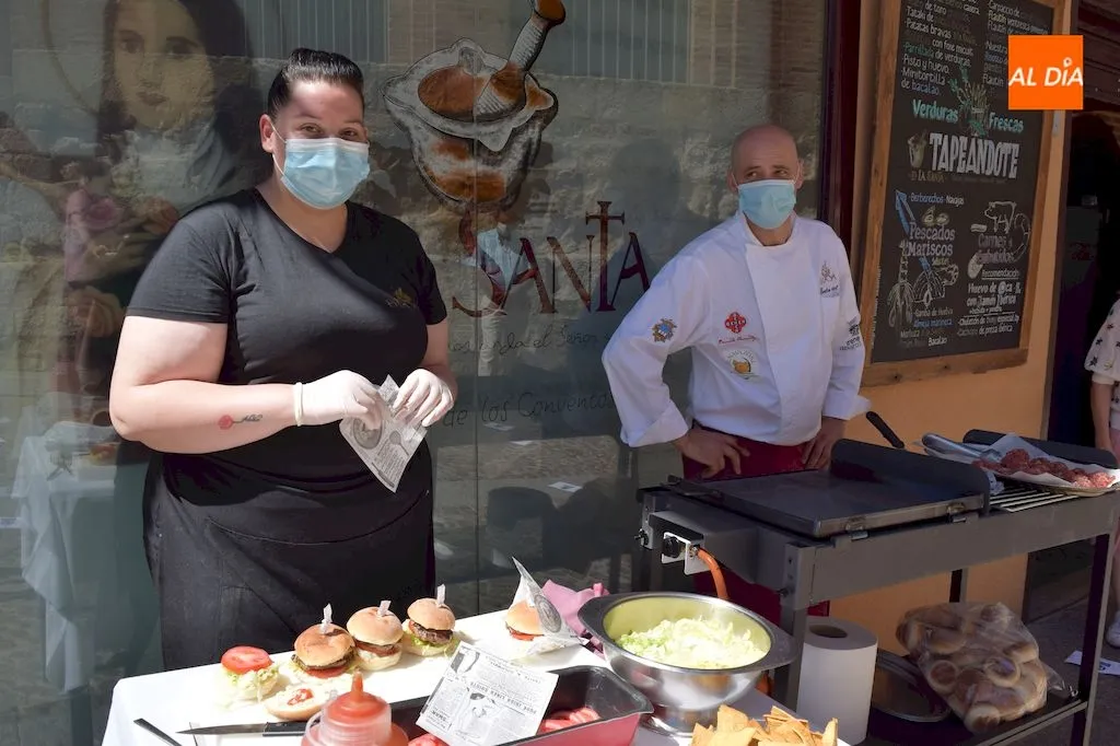 Esta tapa, elaborada con una hamburguesa tradicional como base y una teja de potaje deshidratada sin bacalao para dar el toque carmelitano, sorprendió al público que la probó. Los que no pudieron hacerlo mientras duró el showcooking podrán hacerlo de igual manera durante todo el fin de semana en este establecimiento de Alba de Tormes.
