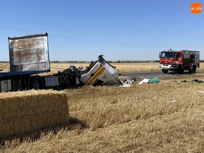 § 13 de julio. Dos muertos tras un choque frontal de dos camiones en Macotera.
