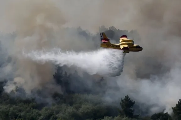 Uno de los incendios en los que intervinieron los aparatos procedentes de Matacán fue el de Porto do Son. El fuego se declaró a las 17,42 horas del sábado y calcinó una superficie de 40 hectáreas, según mediciones provisionales, permanece estabilizado.