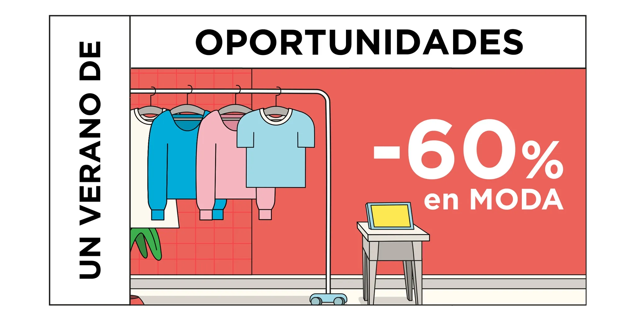La campaña, que se caracteriza por sus colores variados y alegres, arranca en televisión con un spot, en radio y redes sociales para informar de estos grandes descuentos que ofrece ?Un Verano de Oportunidades?.