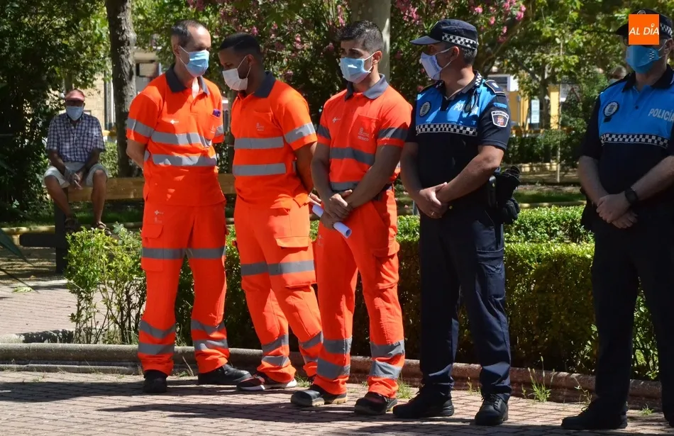 Beatriz Jorge Carpio fue la encargada de introducir a las hasta 9 personas que tomaron la palabra: Manolo del Val, sanitario del Centro de Salud y Especialidades, en representación de todos los trabajadores de éste Centro; Sergio Paniagua, técnico de la Unidad Medicalizada de Emergencias, en representación de los servicios de Urgencias; Narciso Caridad, Jefe de la Policía Local, en nombre de las Fuerzas de Seguridad; Jesús Muñoz, presidente de los Bomberos de Ciudad Rodrigo; Jesús García Muñoz, gerente de la Residencia Caracillo; José Ángel Alvira, tesorero de las Conferencias de San Vicente de Paúl, en representación de las ONG?s mirobrigenses; Jesús García Burillo, administrador apostólico de la Diócesis, en nombre de la Diócesis; Manuel García Rufino, diputado provincial de zona; y el alcalde Marcos Iglesias.