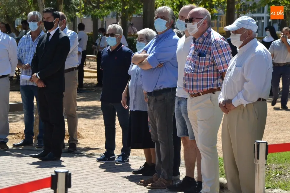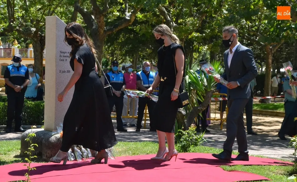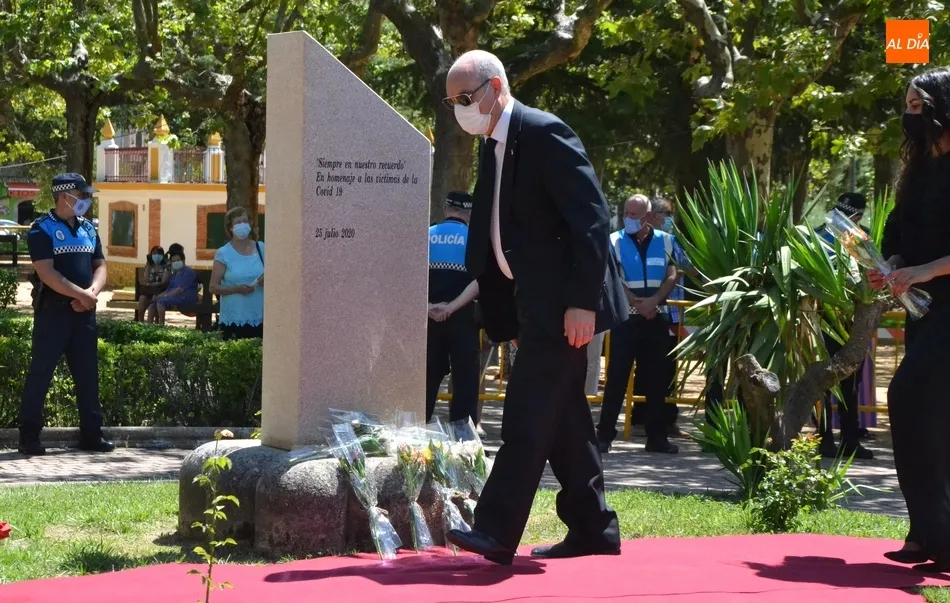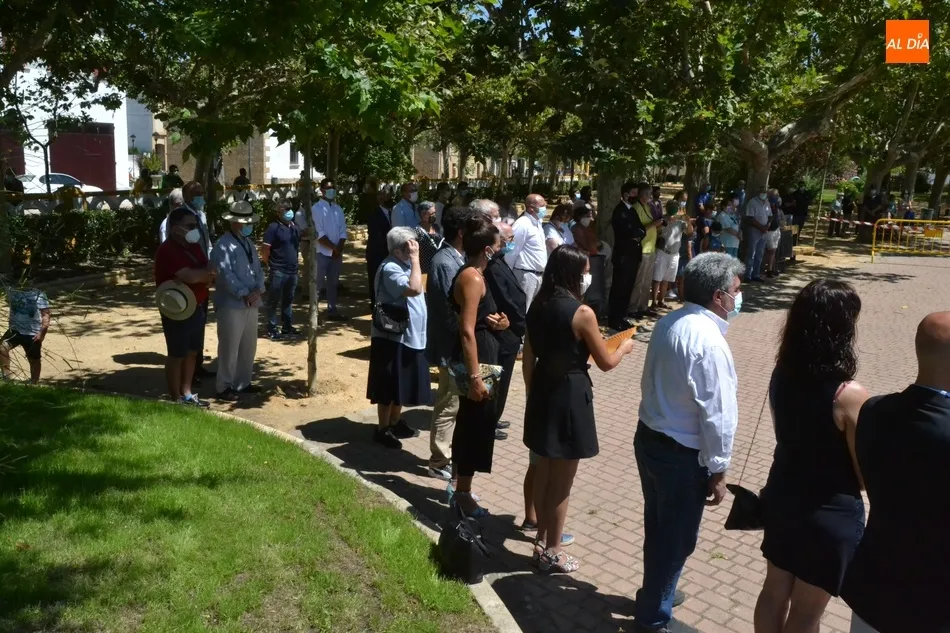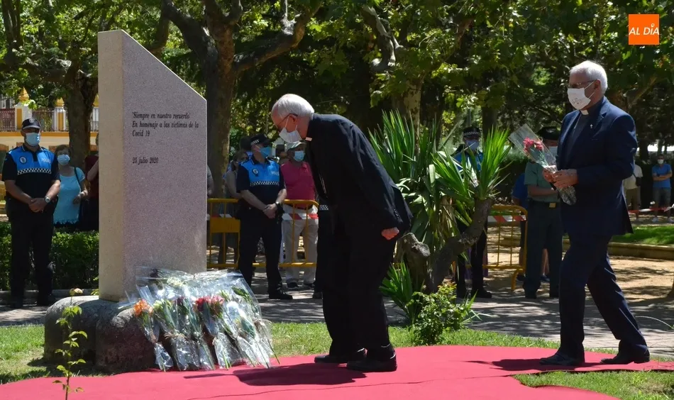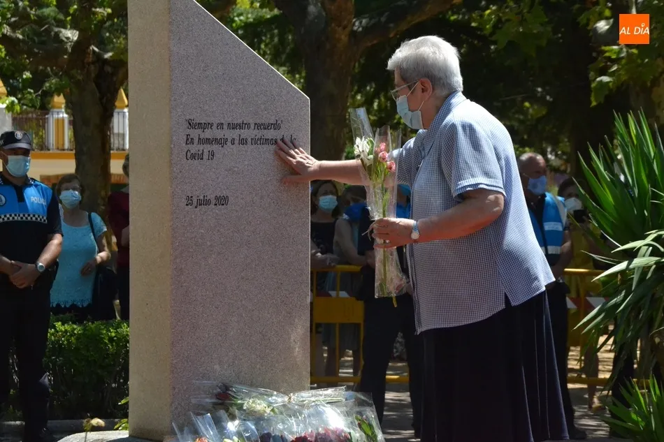 Concluido en la Catedral de Santa María el funeral en memoria de las víctimas del coronavirus en la Diócesis de Ciudad Rodrigo, la mayor parte de los asistentes se trasladaron hasta el Parque de La Glorieta, para tomar parte en el homenaje civil convocado por el Ayuntamiento mirobrigense en recuerdo de los fallecidos por la misma causa, que ha quedado simbolizado de forma perenne con la instalación de un monolito, en el lugar que ocupó la imagen de una Virgen que fue descabezada varias veces y que acabó por desaparecer.