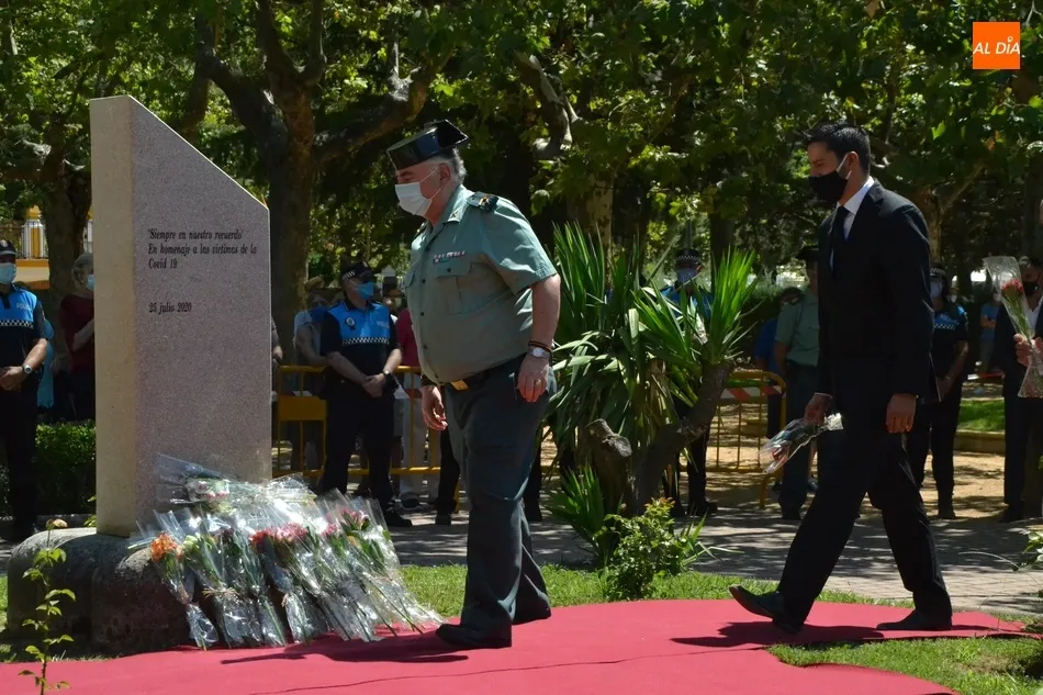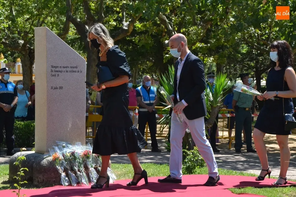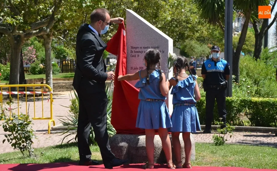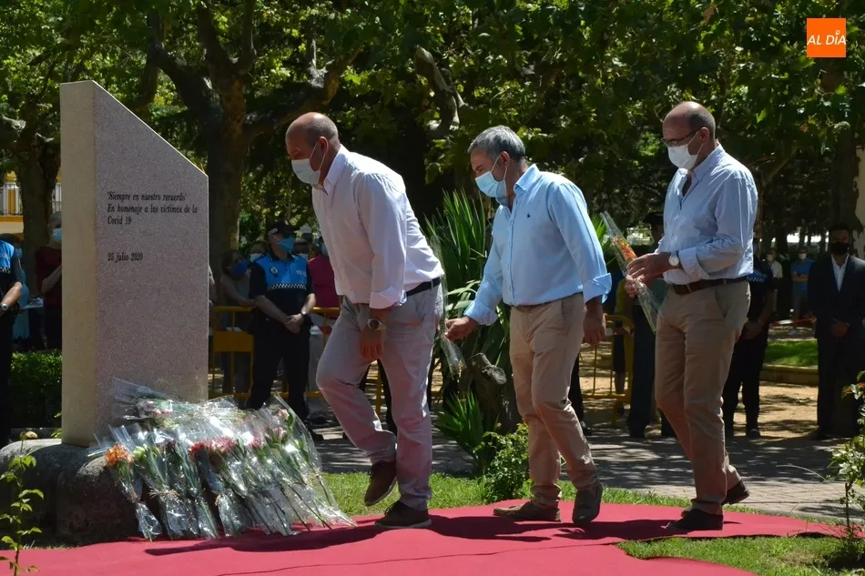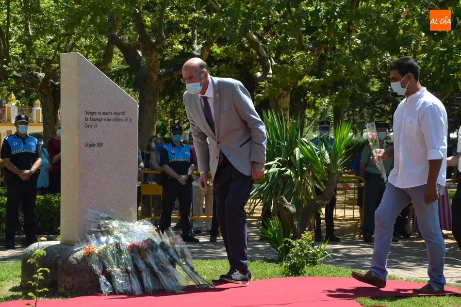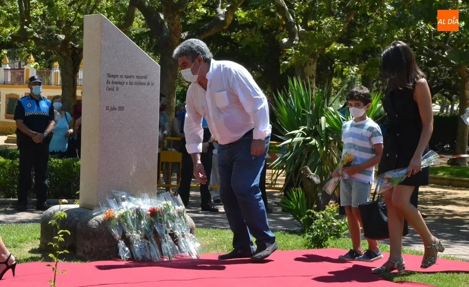 Concluido en la Catedral de Santa María el funeral en memoria de las víctimas del coronavirus en la Diócesis de Ciudad Rodrigo, la mayor parte de los asistentes se trasladaron hasta el Parque de La Glorieta, para tomar parte en el homenaje civil convocado por el Ayuntamiento mirobrigense en recuerdo de los fallecidos por la misma causa, que ha quedado simbolizado de forma perenne con la instalación de un monolito, en el lugar que ocupó la imagen de una Virgen que fue descabezada varias veces y que acabó por desaparecer.