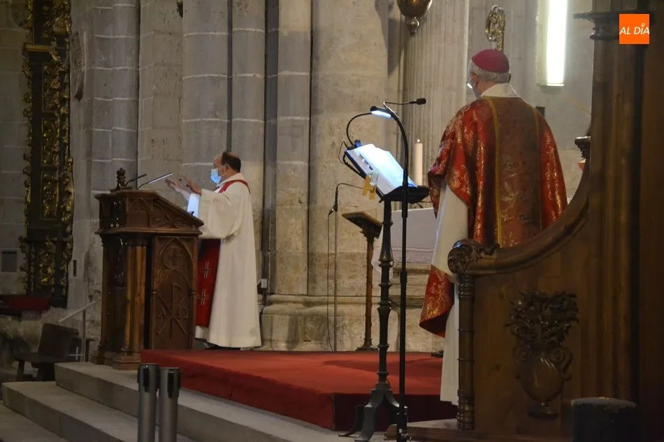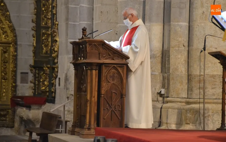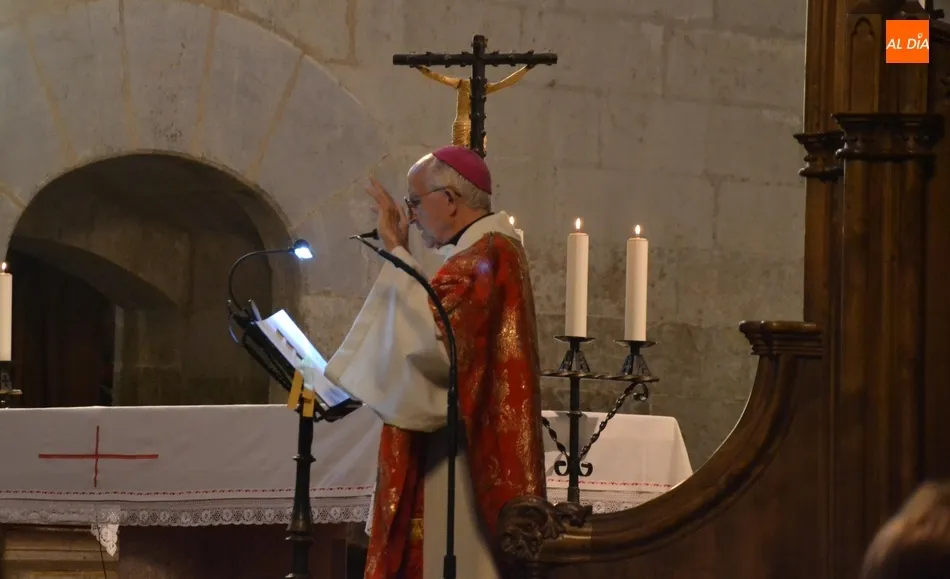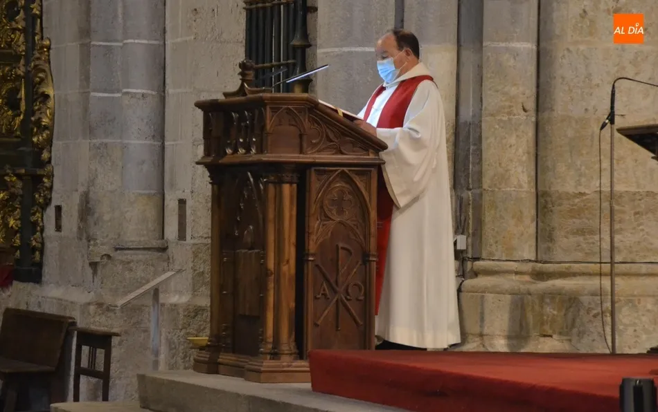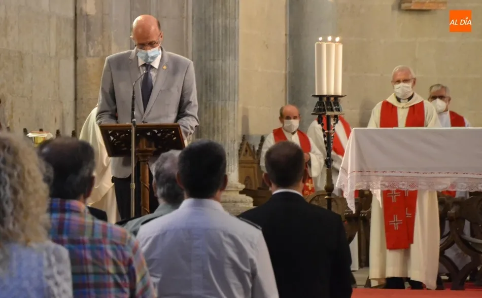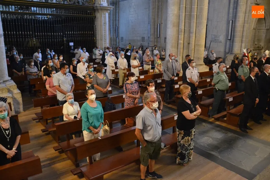 La celebración religiosa ?en la cual tocó uno de los órganos de la Seo Manuel José Gutiérrez- fue presidida por el Administrador Apostólico de la Diócesis, Jesús García Burillo, quién estuvo acompañado por el Obispo emérito de Sigüenza-Guadalajara, el guinaldés José Sánchez; por el presidente del Cabildo Catedralicio, Ángel Martín Carballo; y por un amplio número más de sacerdotes diocesanos, quienes directamente accedieron al Presbiterio de la Seo sin participar en el habitual desfile hacia el altar que sí realizaron los prelados.