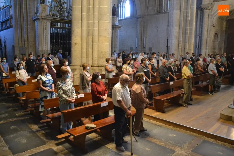 La mañana de recuerdo en Ciudad Rodrigo a las víctimas del coronavirus comenzó en la Catedral de Santa María, con el funeral organizado por la Diócesis Civitatense siguiendo la iniciativa de la Conferencia Episcopal Española, que había propuesto que todas las Diócesis del país convocasen para este sábado un funeral con motivo de la festividad de Santiago Apóstol, patrón de España.