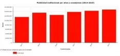 En 2016, 12.418.834 euros (10.264.834,2 euros en publicidad institucional, más 2.153.999,75 euros en agencias de noticias y otros servicios de comunicación); en 2015, 13.387.699,88 euros (11.215.549,9 euros en publicidad institucional, más 2.172.149,86 euros en agencias de noticias y otros servicios de comunicación); y en 2014, 11.500.894,09 euros (9.401.625,06 euros en publicidad institucional, más 2.099.268,94 euros en agencias de noticias y otros servicios de comunicación).