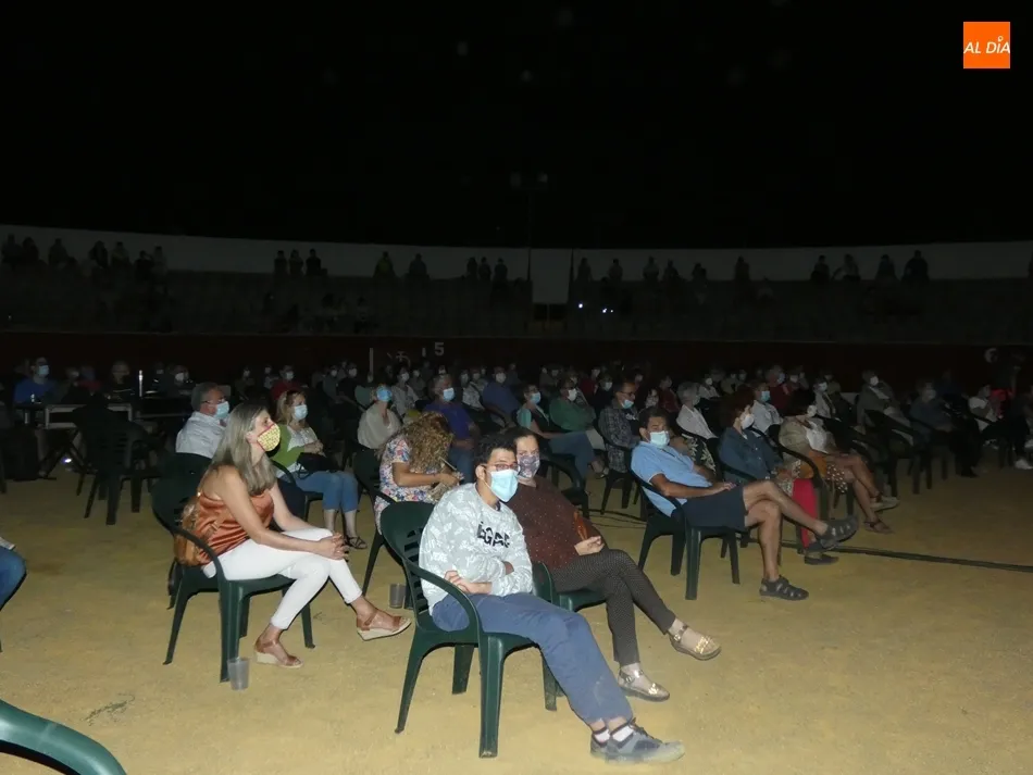 Anoche, Villoria disfrutó del concierto ?Tributo al pop?. Destacados músicos que han acompañado durante sus mejores tiempos a cantantes famosos, interpretaron éxitos de Manolo García, Los Secretos, Antonio Vega, Miguel Ríos o Joaquín Sabina. Fueron Ricardo Martín, Anye Bao, Paco Bastante y Basilio Marti, los interpretes que iluminaron la noche en la plaza de toros de Villoria, haciendo disfrutar a los asistentes, que con su mascarilla y el respeto a las normas establecidas, se sumergieron por un momento en un pedacito de oasis de este verano para olvidar. Anoche en Villoria hubo buena música e incluso fuegos artificiales que se lanzaron mientras el grupo interpretaba una de las piezas musicales.