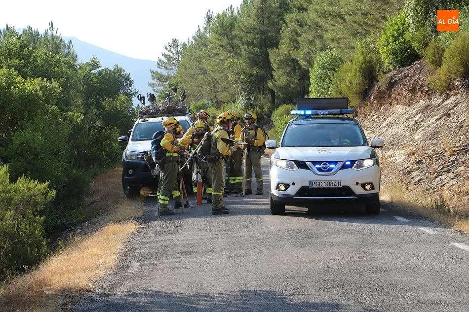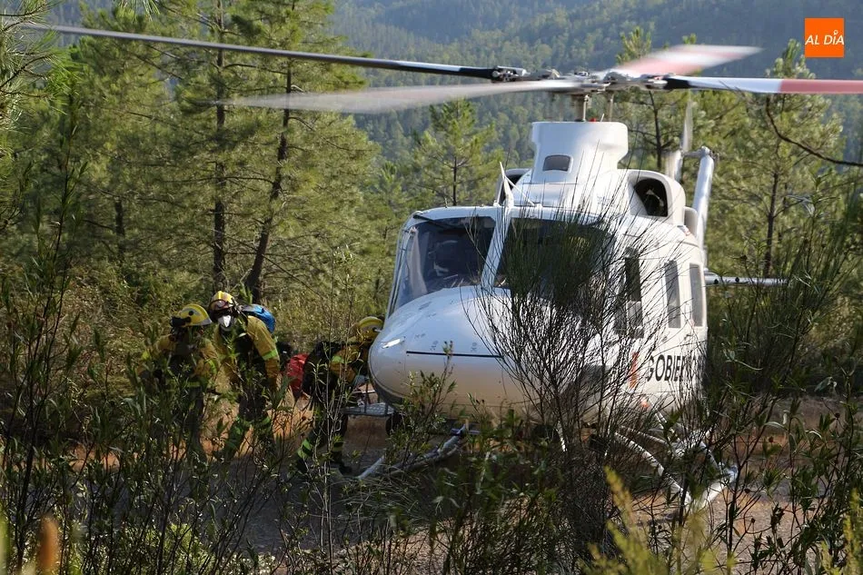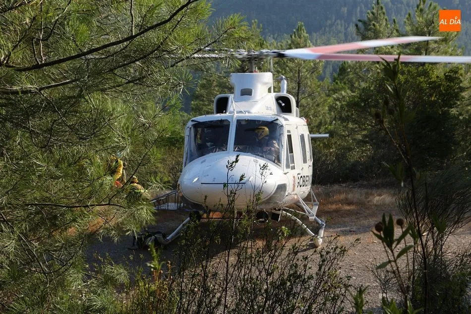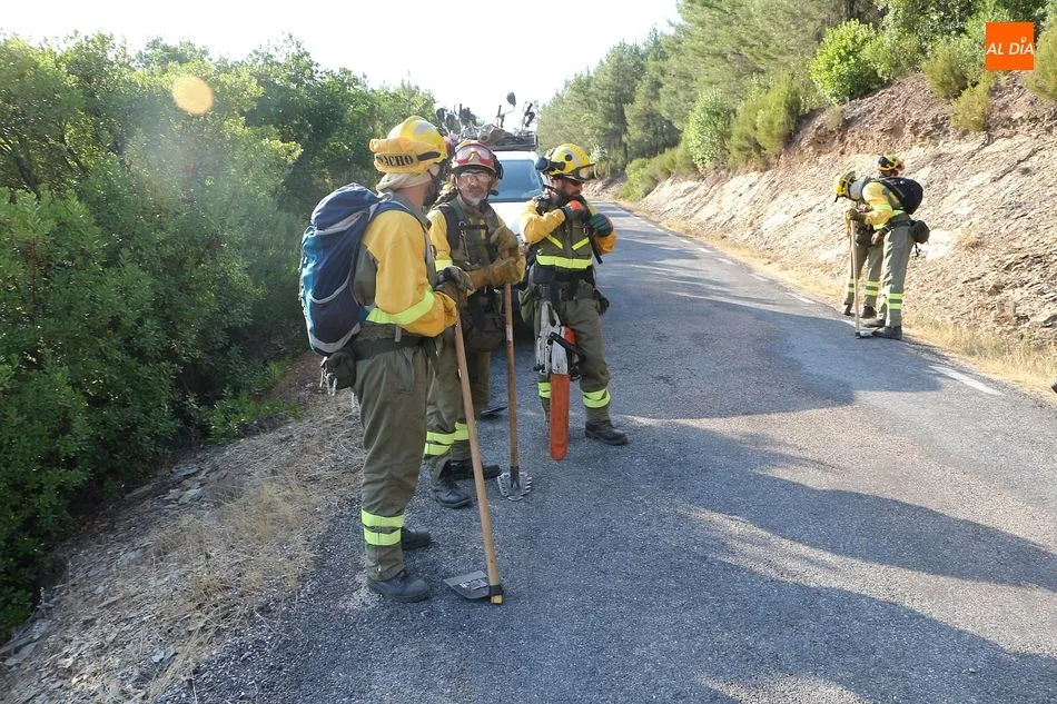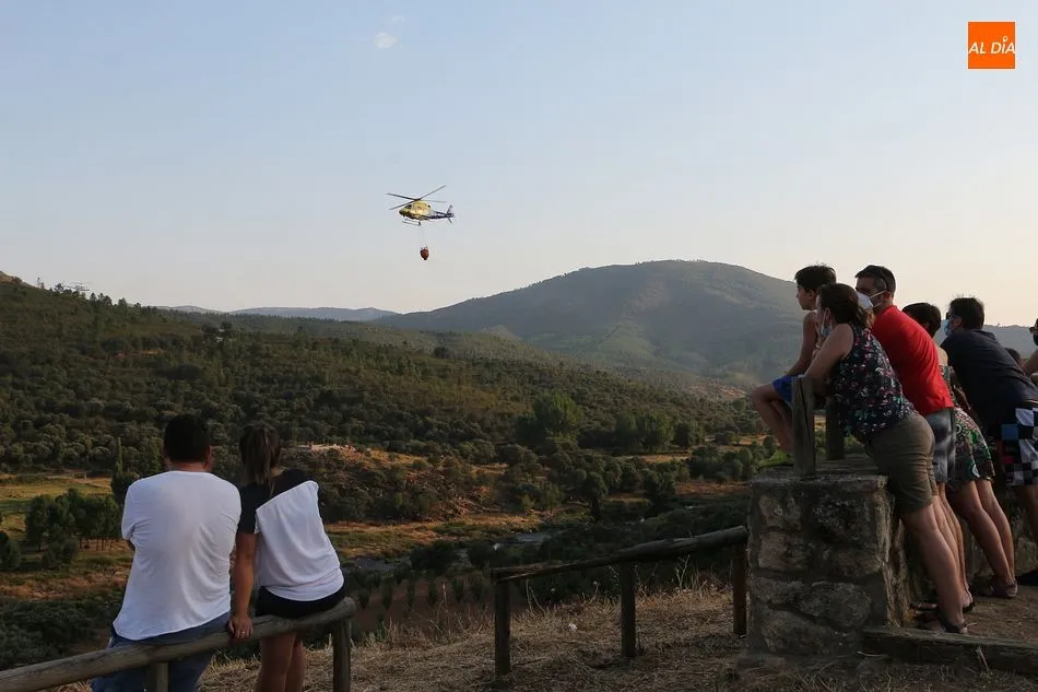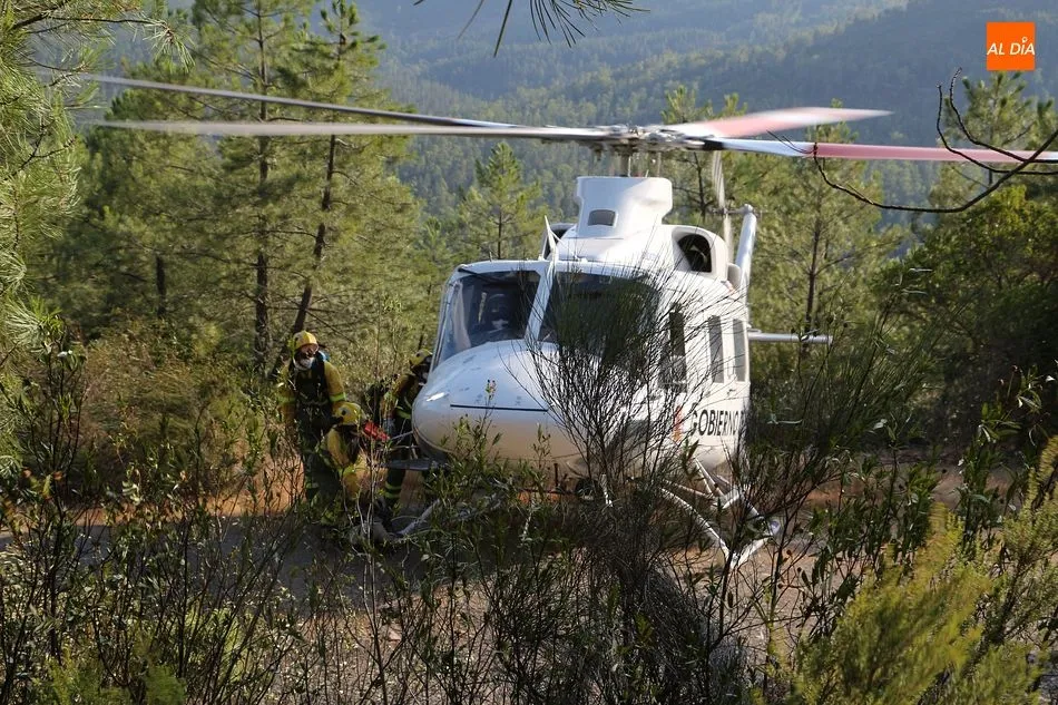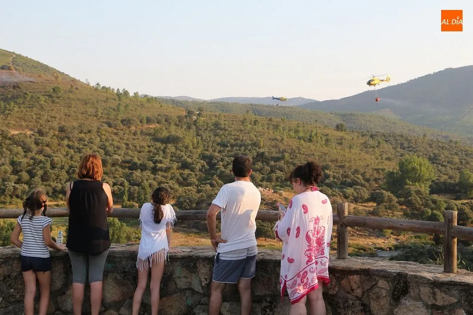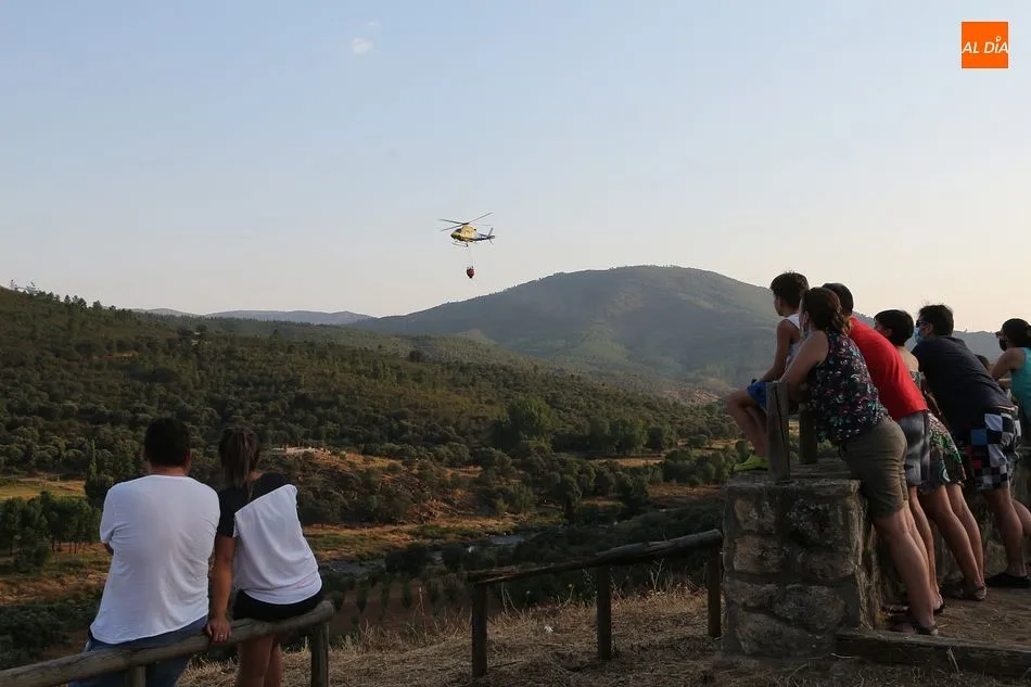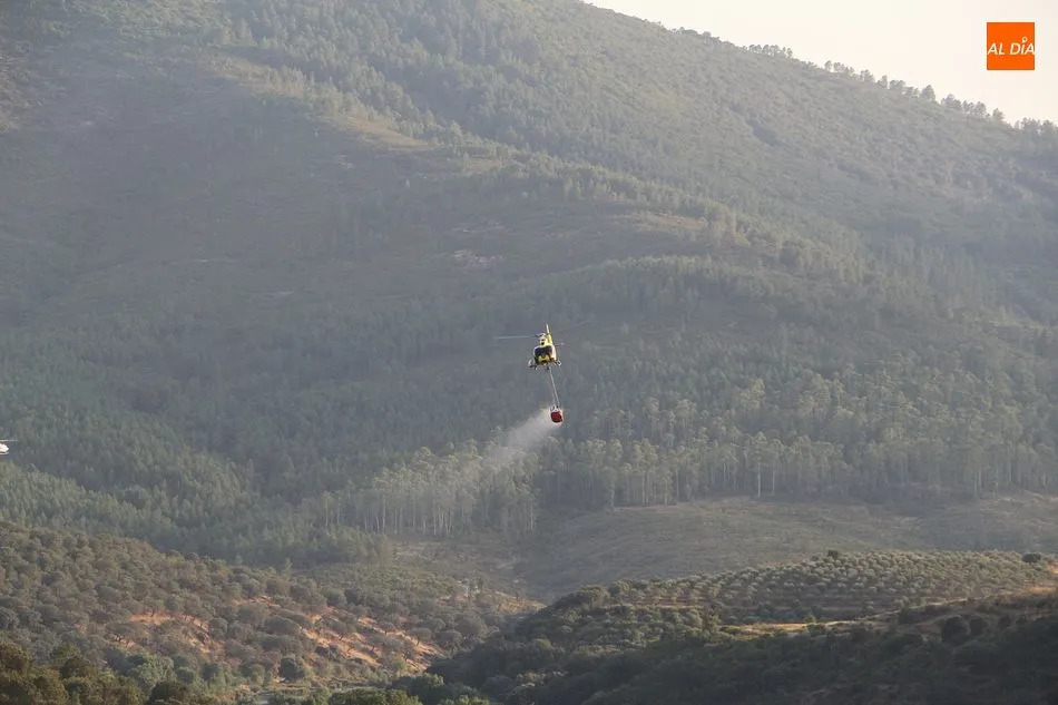 En concreto, se emplean contra estas llamas cuatro helicópteros, cuatro autobombas, 4 cuadrillas terrestres, cinco agentes medioambientales, dos técnicos y un bulldócer de la Junta, así como una brigada de refuerzo (BRIF) y tres helicópteros enviados por el Ministerio --entre ellos un bombardero procedente de la base de Plasencia (Cáceres)--, al tiempo que se ha solicitado también un hidroavión que llegó sobre las 19:00 horas, para un total de 8 medios aéreos y mas de medio centenar de bomberos.