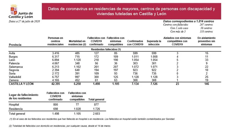 Un total de 1.071 usuarios de residencias de mayores, centros de personas con discapacidad y vivienas tuteladas en Salamanca, y que dieron positivo Covid-19. Cifra que en el conjunto de Castilla y León asciende a 7.126 residentes desde el inicio de la pandemia.