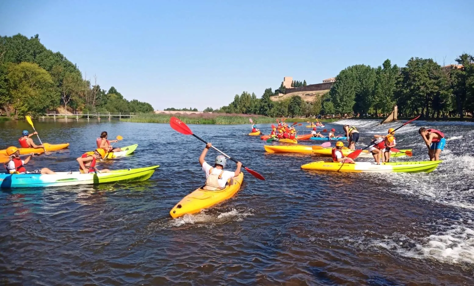 El Miróbriga Campus promovido por el Ciudad Rodrigo Club de Fútbol bajo la dirección de Gabri de Aller y David Risueño está viviendo su edición más especial debido al coronavirus, pero ello no ha sido óbice para llevar a cabo una de sus actividades habituales: un recorrido en piragua por las aguas del río Águeda de la mano de la empresa Descensos Medina.