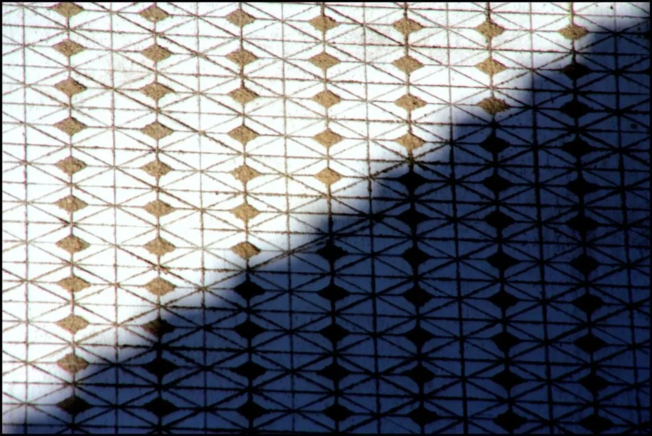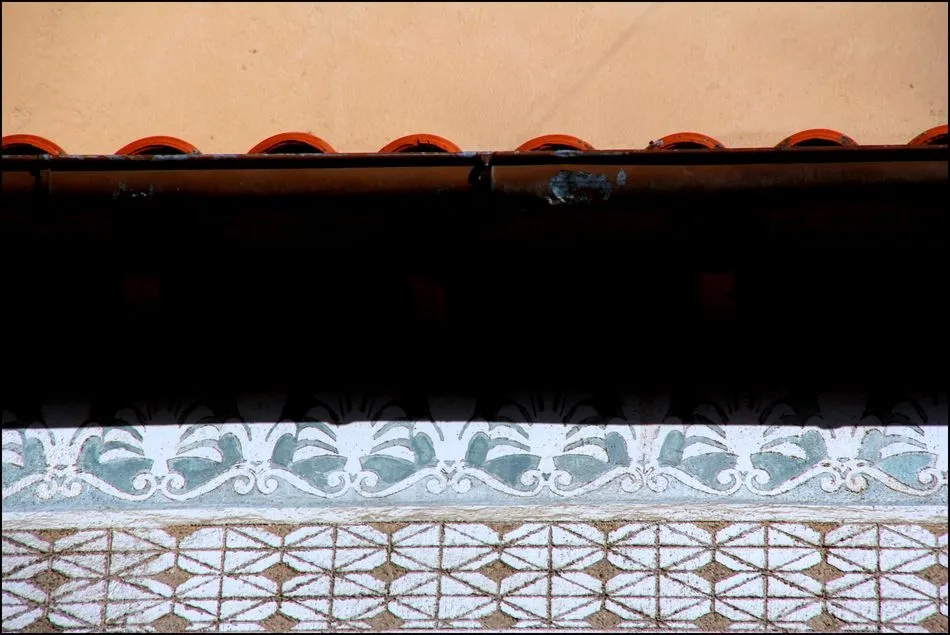 De pie ante los muros, el fotógrafo conversa con la geometría. Hace un caleidoscopio de trigonometría constructiva. Juega con la línea, acaricia la curva, descubre la esquina recortada al sol. Salamanca esgrafiada cubre las paredes para ornar aún más la belleza compitiendo con la piedra dorada, el sillar de Villamayor, el plateresco rico y pleno de curvas. Es la recta trazada con esmero, la plantilla de la greca que se repite y hace de la continuidad poesía constante. Versos trazados a escuadra blancos, rojizos, ocres sobre las paredes salmantinas borrachas de piedra al sol. Cal que triunfa sobre el sillar, hermosa perspectiva. Y en un alarde bordado, humilde y bello, las casas despliegan un arte milenario que nos devuelve al principio de nuestra naturaleza: cuidar la casa, adornar las paredes, sentirnos a cubierto. Y el fotógrafo da un paso atrás, en trama convertido.